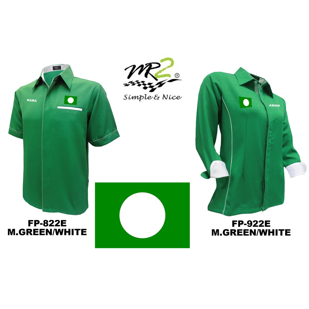 Baju Kemeja Korporat PAS Warna HIJAU (LOGO PAS & NAMA) (FP-822E LENGAN PENDEK) (FP-922E LENGAN PANJANG) JENAMA MR.2