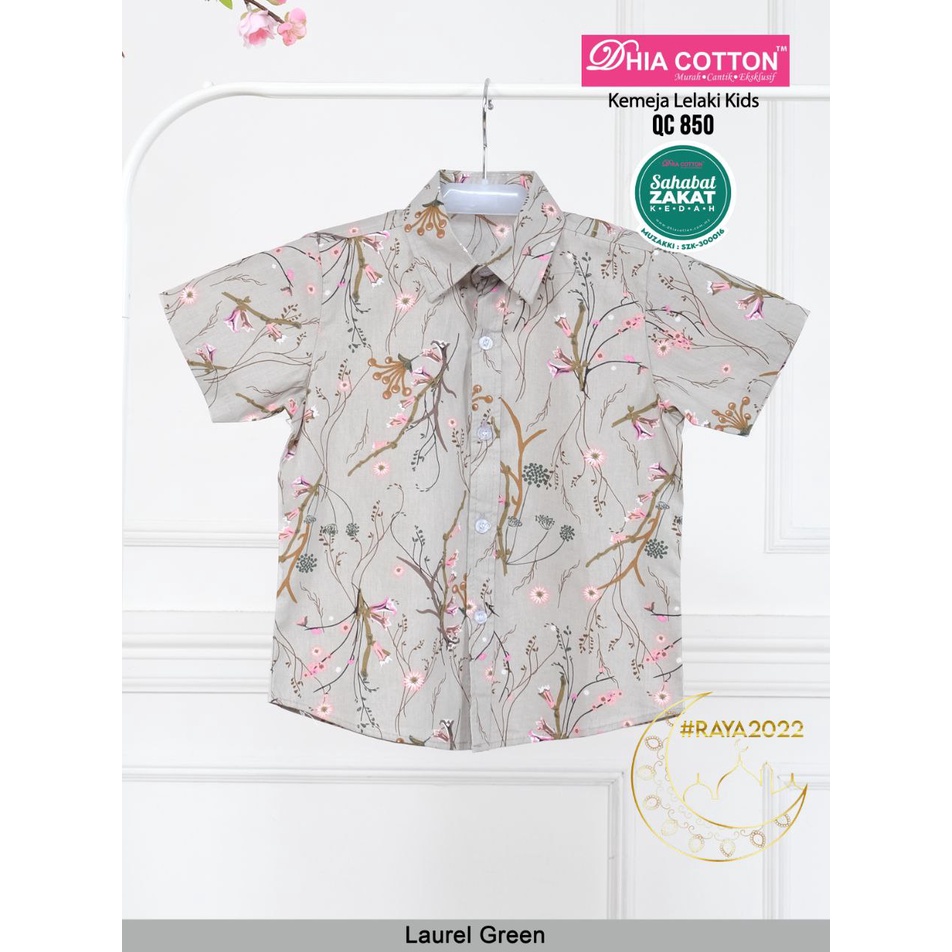 Baju Kurung Moden Hijau Laurel Green Pastel sedondon baju kurung kanak-kanak kemeja lelaki baju budak lelaki Dhia Cotton