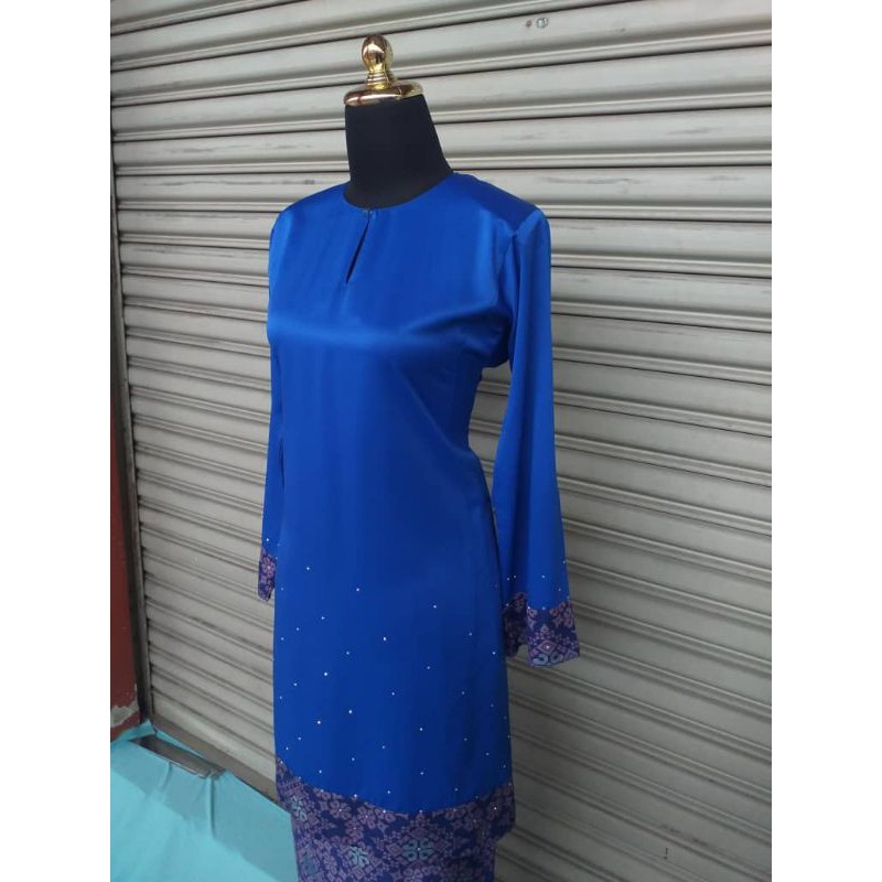 Baju Kurung Pesak Set Mak Anak Royal Blue Plain Songket Berbatu Limited Edition Raya