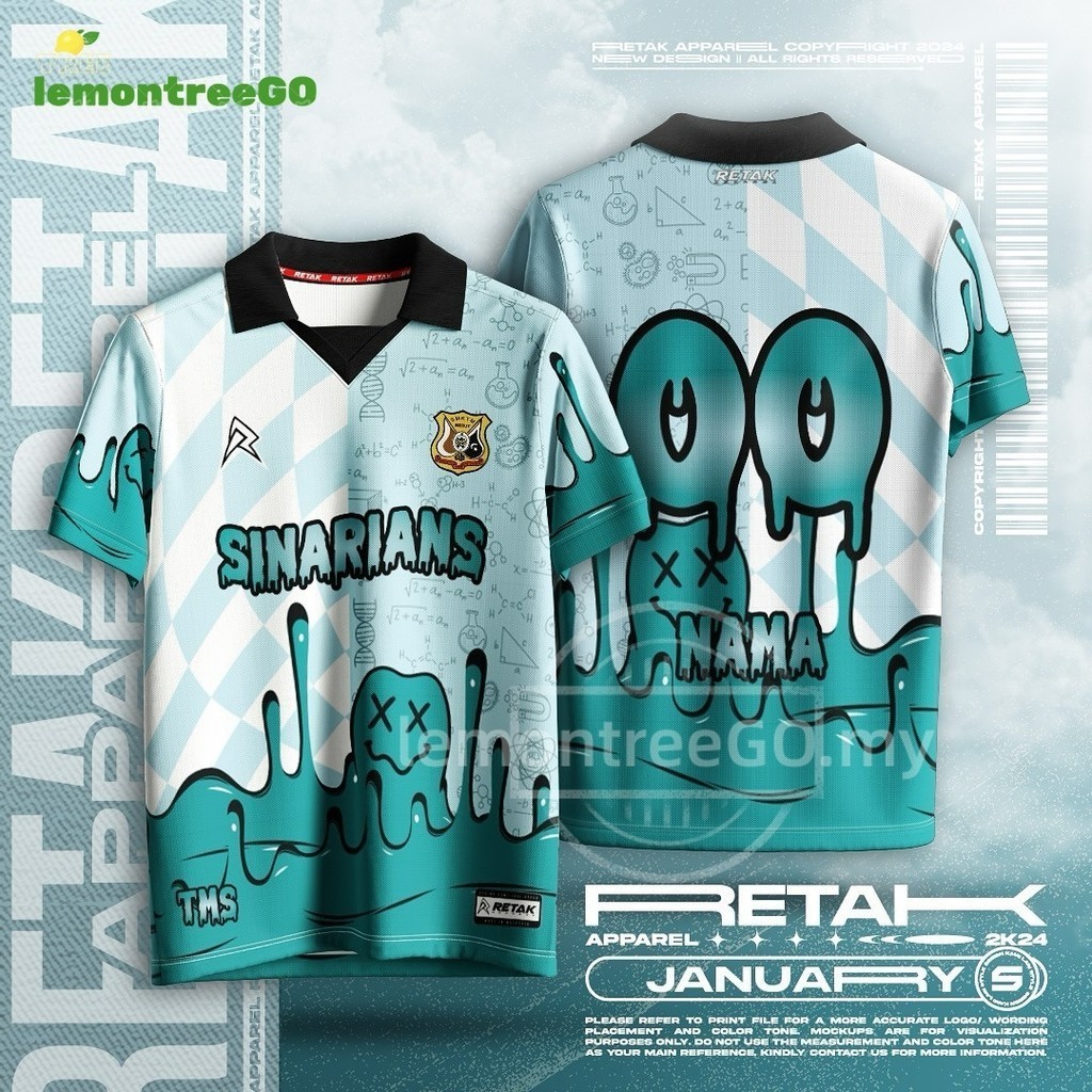 Baju Light Blue Custom Jersey Design Baru Retro Collar Jersey Viral Baju Jersey Custom Nama Dan Nombor OOTD Jersi Murah Lelaki Perempuan Lengan Pendek Polo Shirt Streetwear Jersey