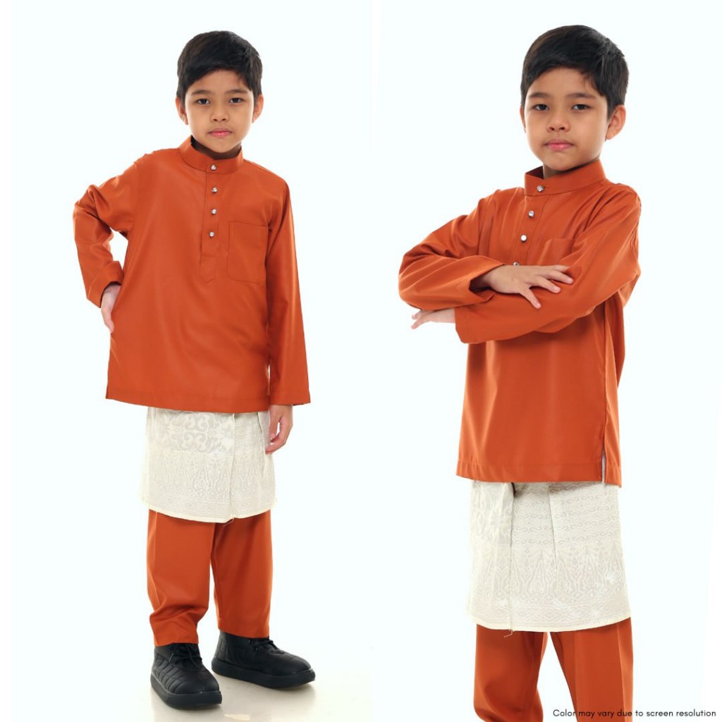 Baju Melayu Boy Orange Brick Baju Melayu Budak Lelaki Japanese Cotton Cekak Musang Oren Bata