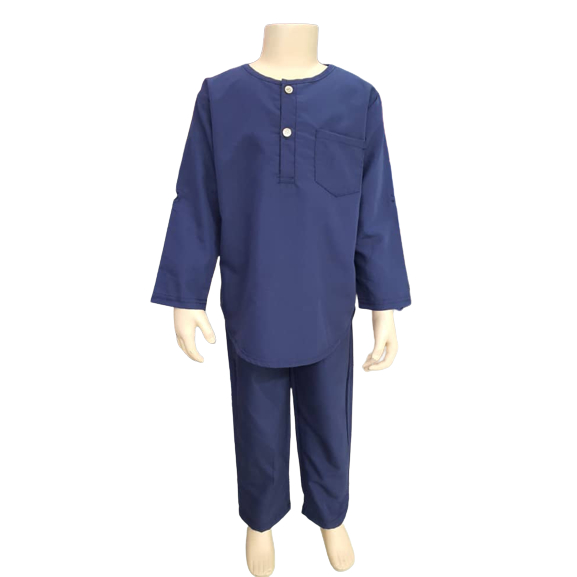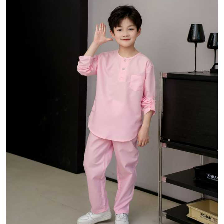 Baju Melayu Budak Kurta Budak Lelaki Baju Melayu Slim Fit Cotton Baju Raya 2026 Sedondon Hitam Ash Blue