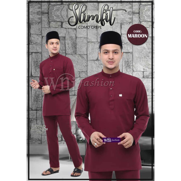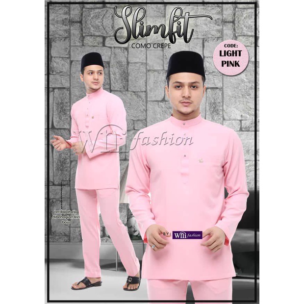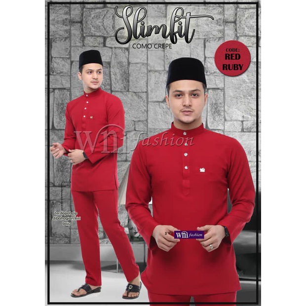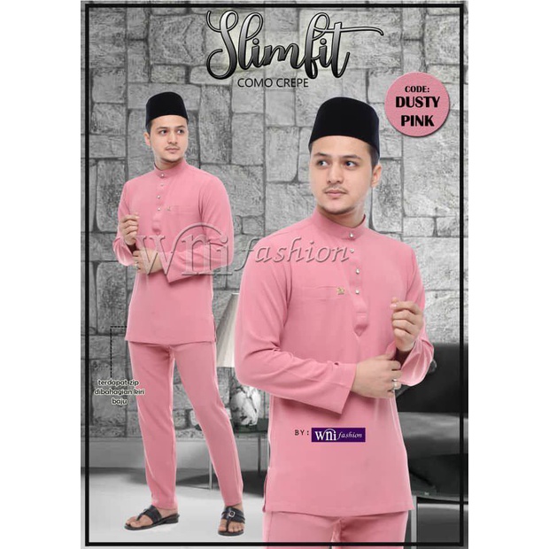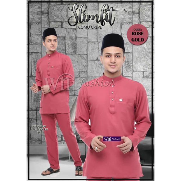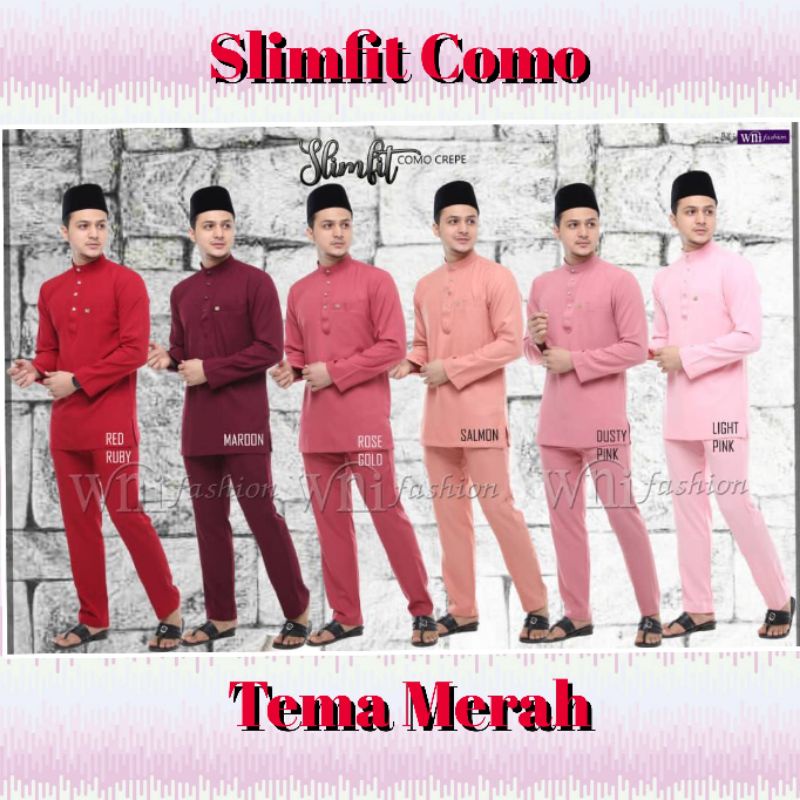Baju Melayu Slim Fit Tema Merah red ruby maroon salmon rose gold dusty pink light