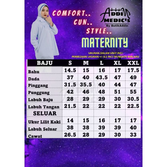 Baju maternity Nurse Uniform Jururawat Mengandung SN SR PPK addim medic's