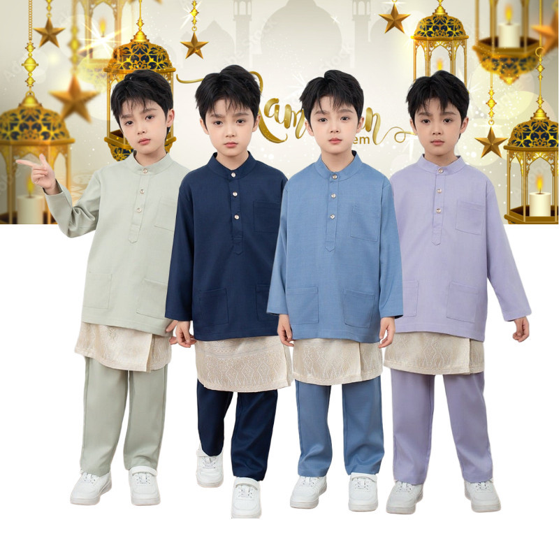 Baju Raya 2026 Baju Melayu Lelaki Faiz Cekak Musang Sampin Muslim Attire Kids Clothes Butang Clothing BR02