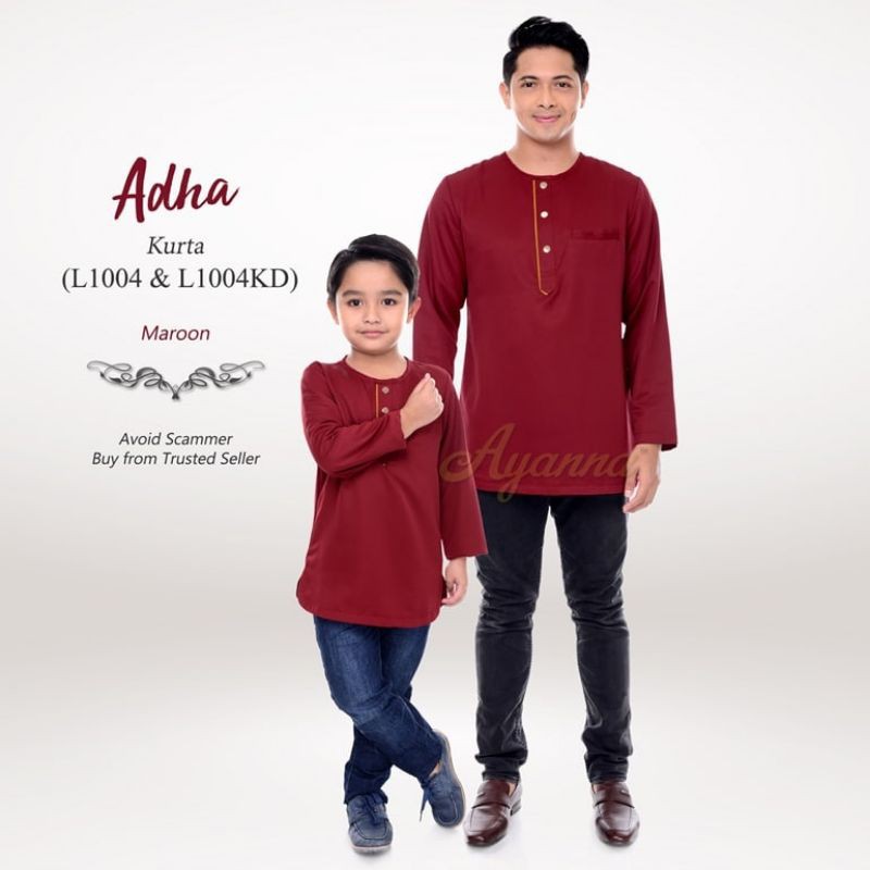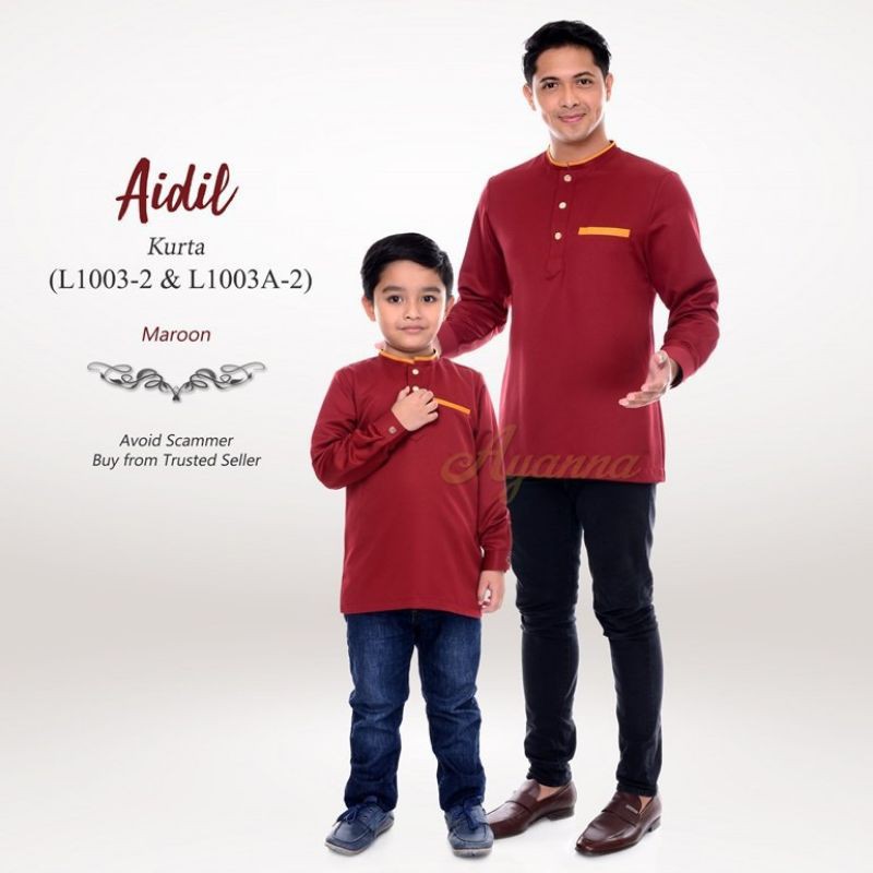 Baju Raya Sedondon Tema Warna Maroon (Merah Gelap) Set Family Ayah Ibu Anak Baju Kurung Baju Melayu Kurta [RAYAFR]