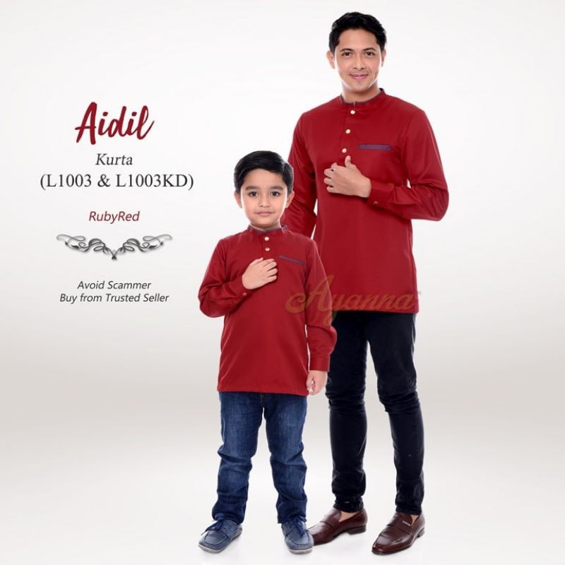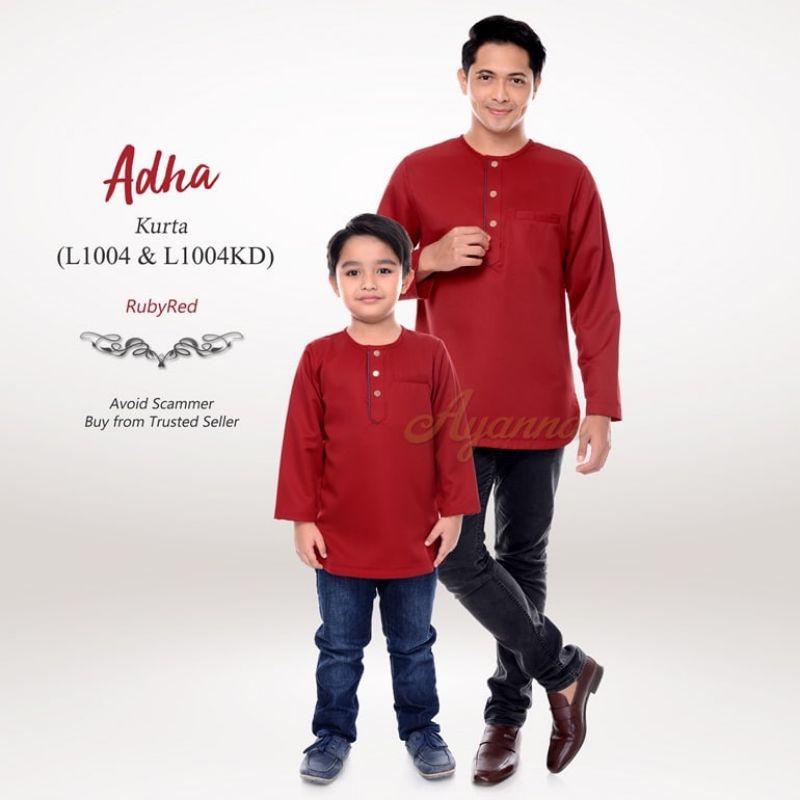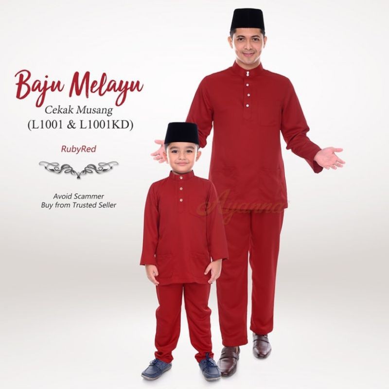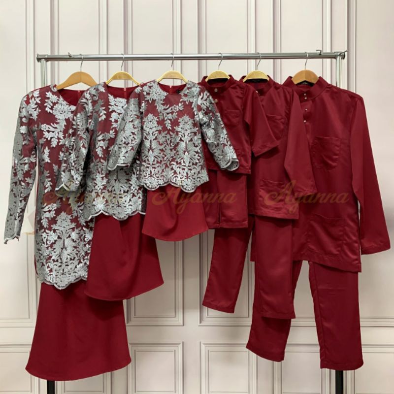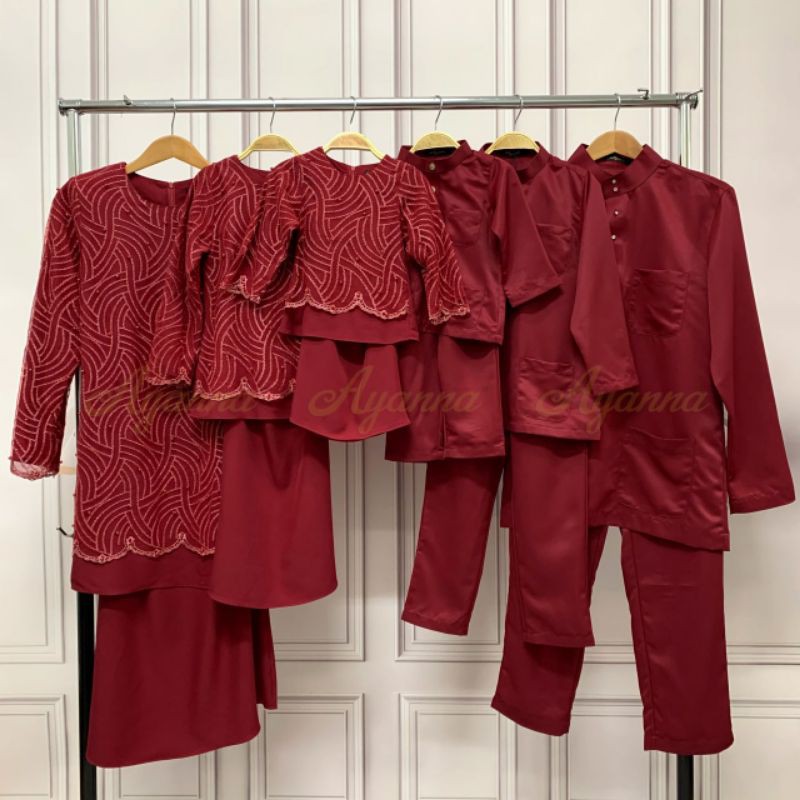 Baju Raya Sedondon Tema Warna Ruby Red (Merah Cili) Set Family Ayah Ibu Anak Baby Baju Kurung Baju Melayu Kurta [RAYAFR]