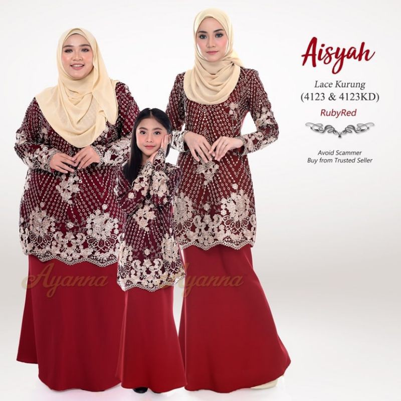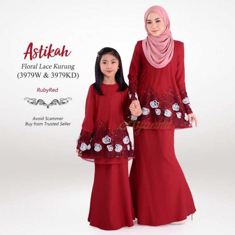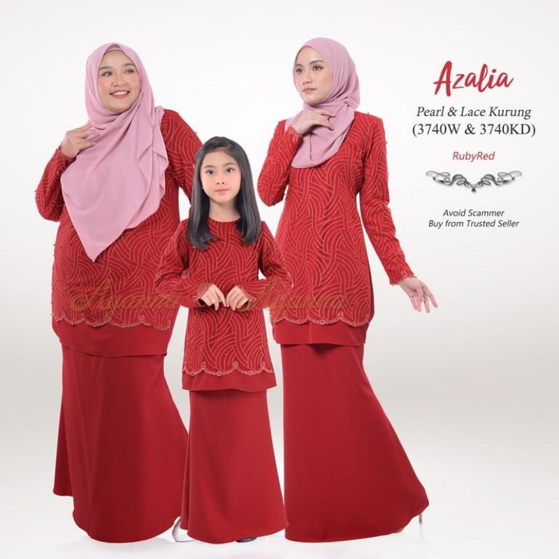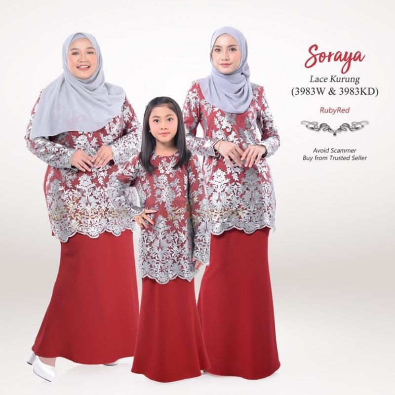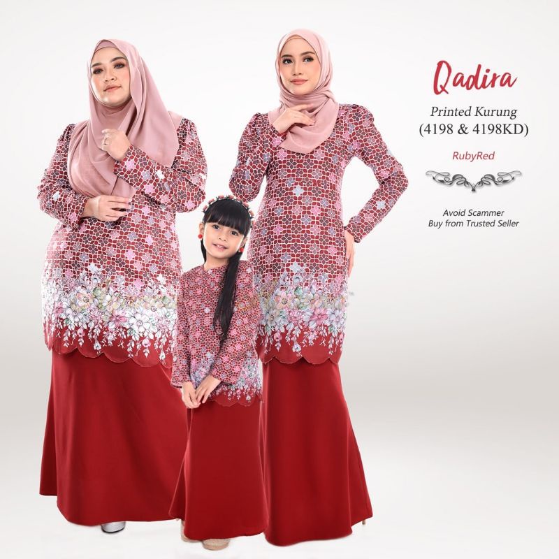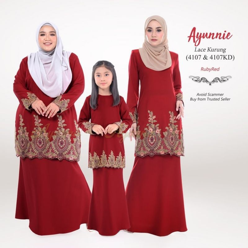 Baju Raya Sedondon Tema Warna Ruby Red (Merah Cili) Set Family Ayah Ibu Anak Baby Baju Kurung Baju Melayu Kurta [RAYAFR]