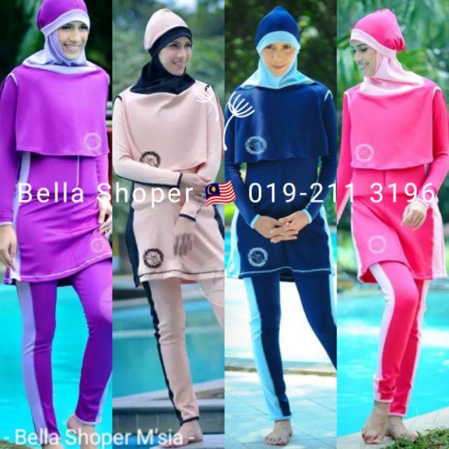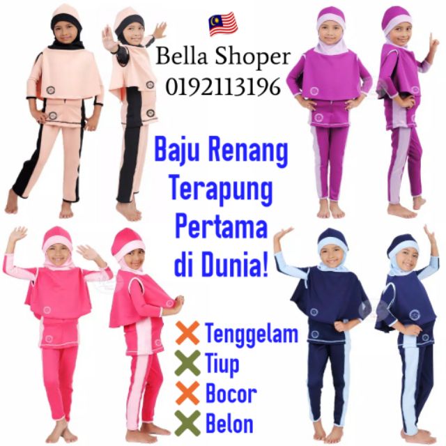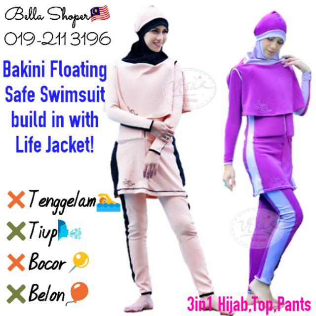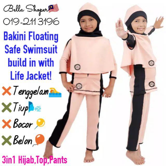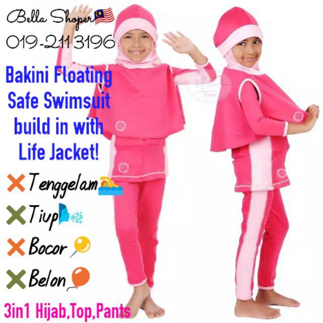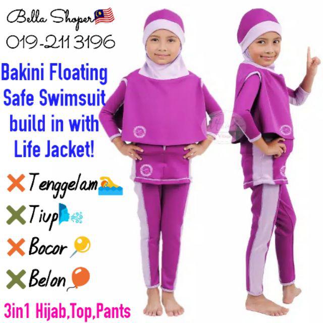 Baju Renang Budak Girl Bakini Floating Burkini Safe Swimming Bikini Life Jacket Muslimah Terapung Swimwear Pink Purple