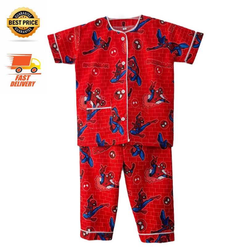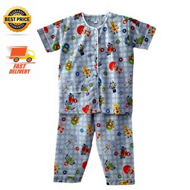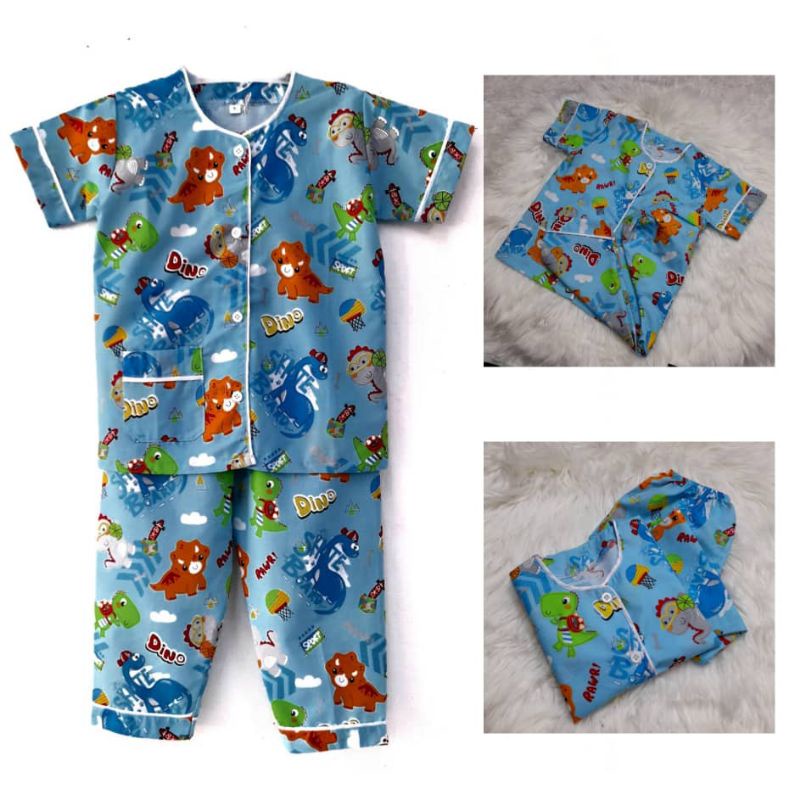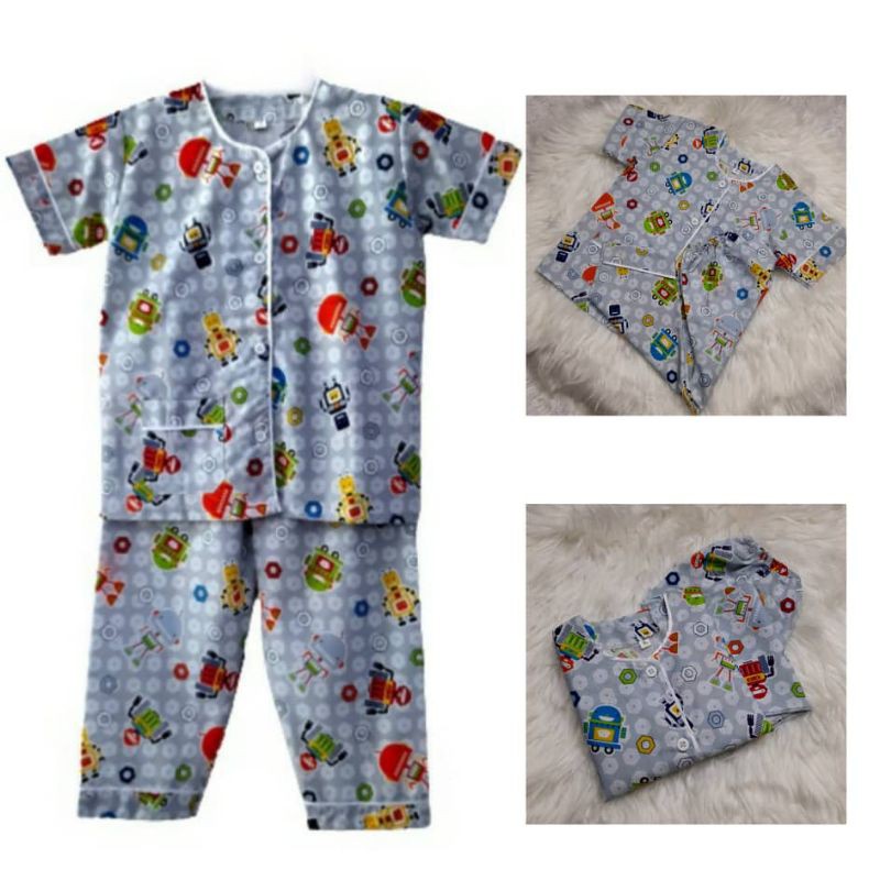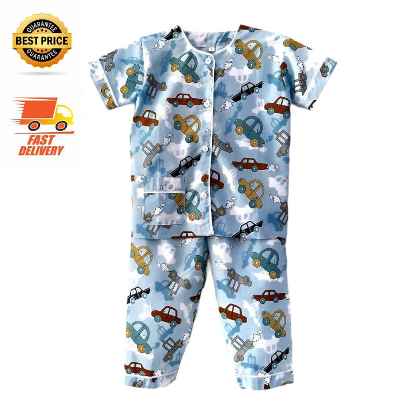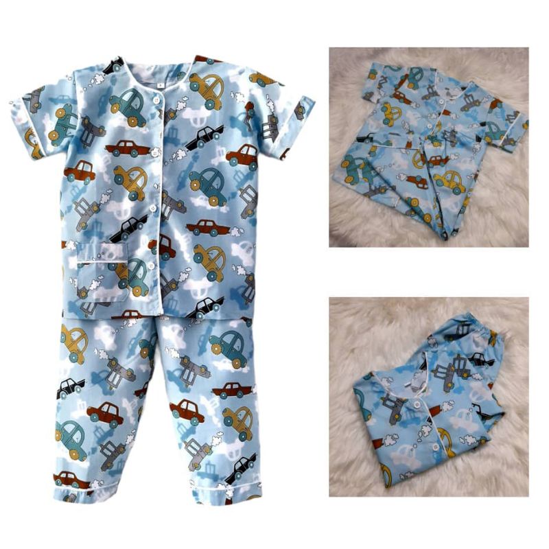 Baju Tidur Budak Lelaki Leher Bulat 4 Pilihan Set Lengan Pendek + Seluar Panjang