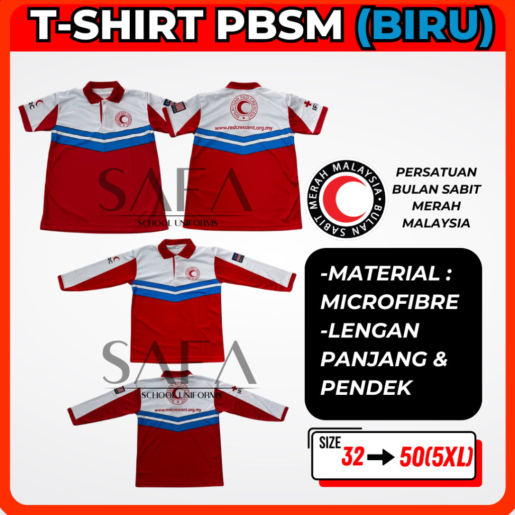 Baju Tshirt Bulan Sabit Merah Malaysia BSMM PBSM Baru Biru Sekolah Rendah Lengan Pendek Panjang Short Long Sleeve