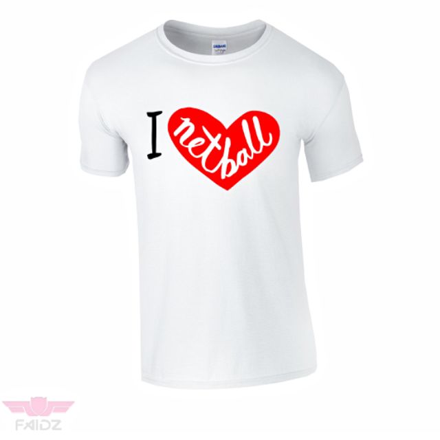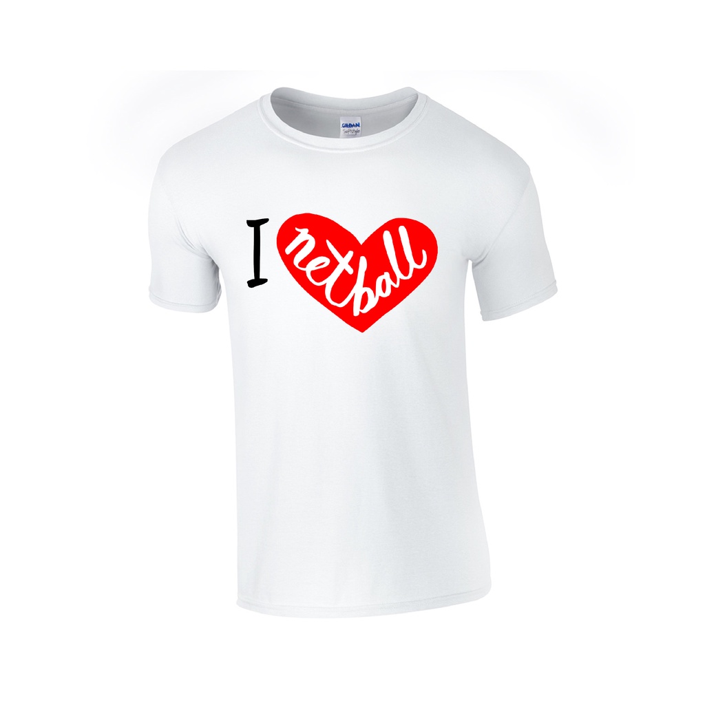 Baju Tshirt I Love Netball Print 100% Soft Cotton Bola Jaring Shirt White
