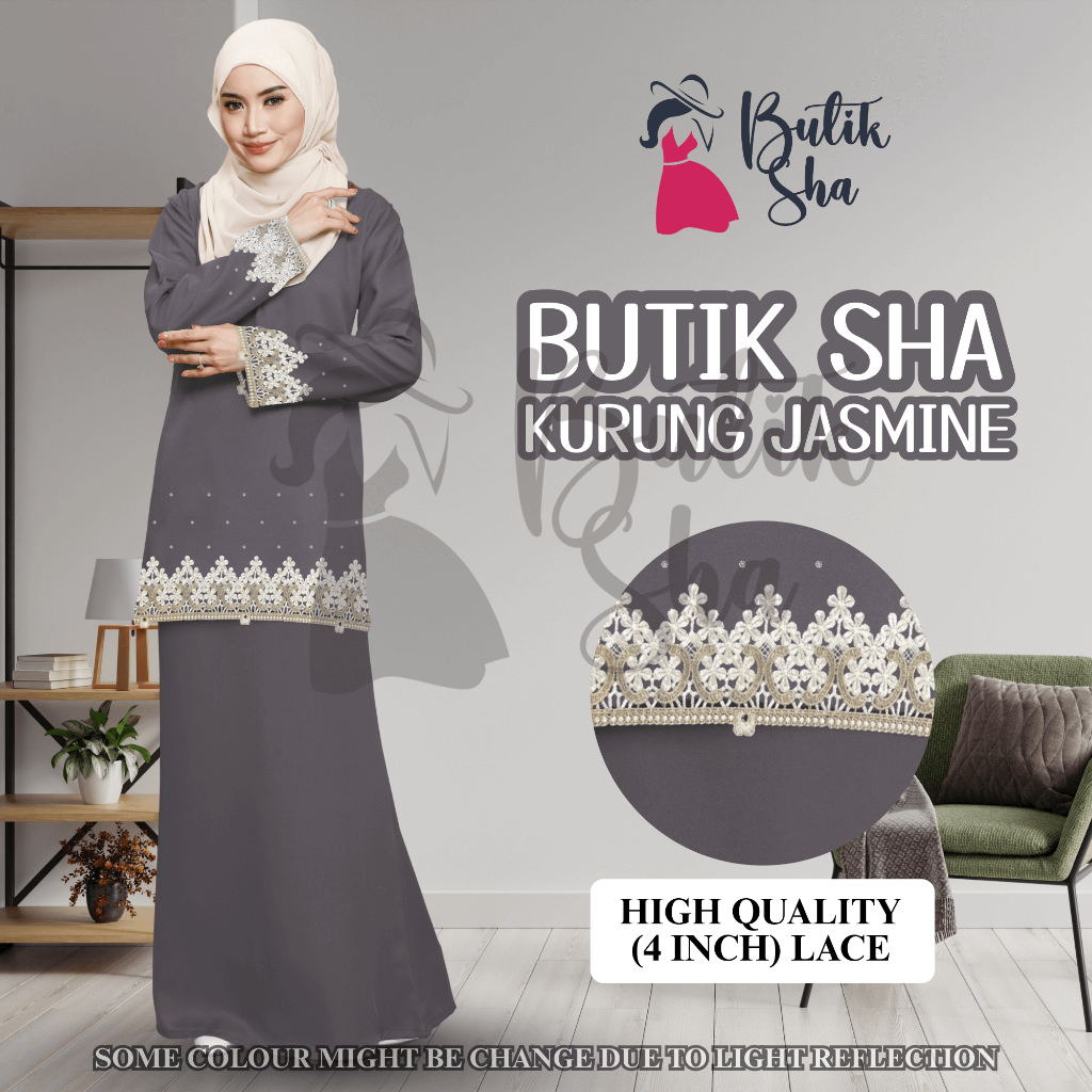 Baju kurung jasmine with beautiful gold thread lace and front zip LATEST design of raya 2026