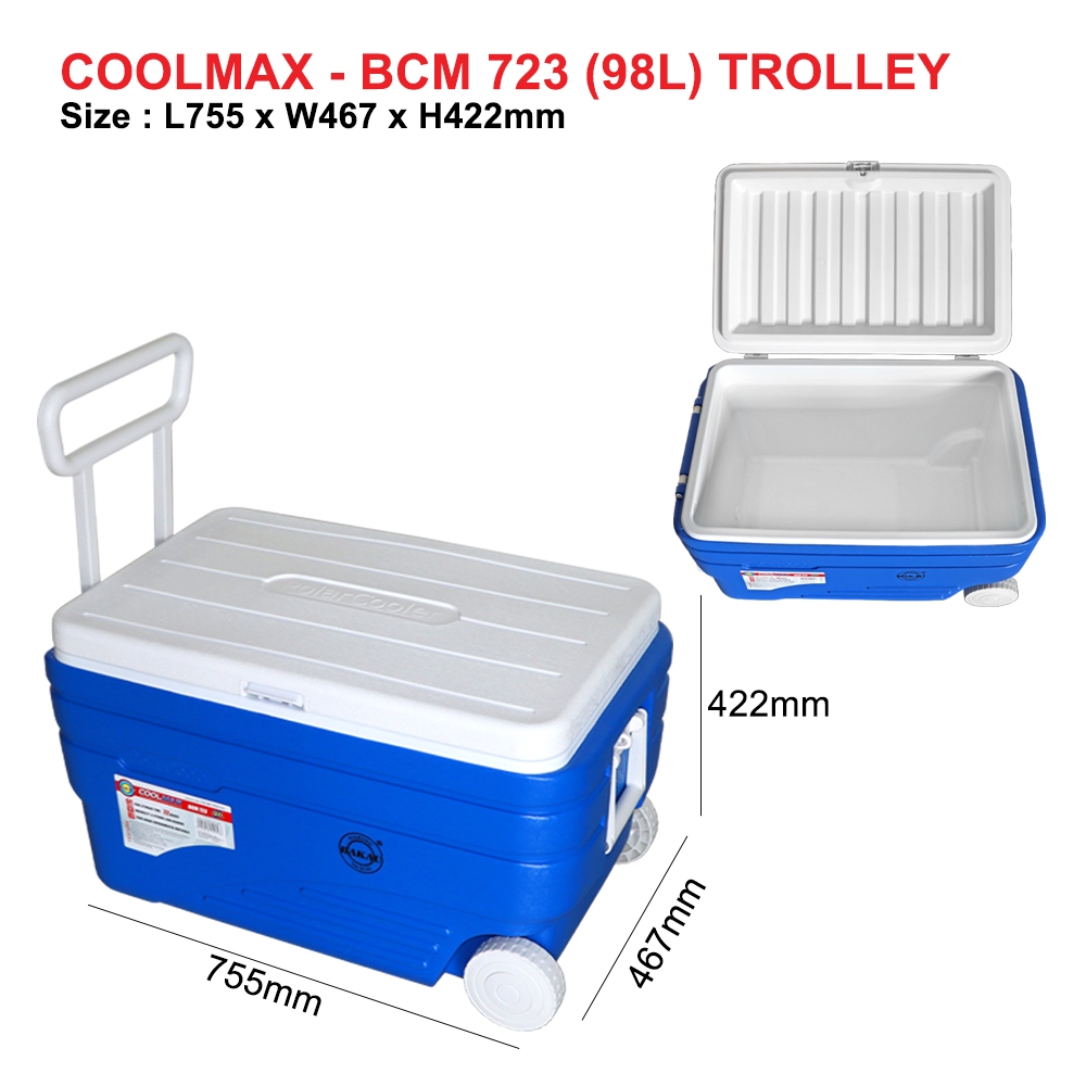 Bakau Coolmax Trolley (36L-98L) Cooler Box Kotak Box Tahan Sejuk Freezer Ice Cold Box Kotak Penyejuk With Wheel