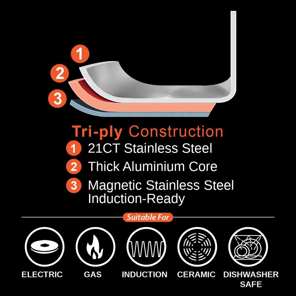 QWARE 3-ply Stainless Steel Sandwich Bottom Casserole Pot with Lid (4/6/8/10L)