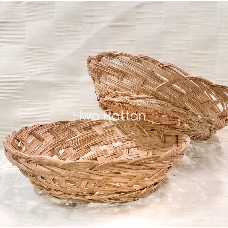 Bakul lidi serving tray organiser display basket / Bakul anyaman rotan letak periuk panas / Fruits display tray woven