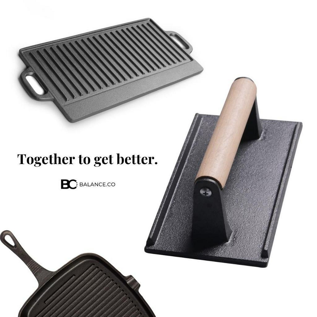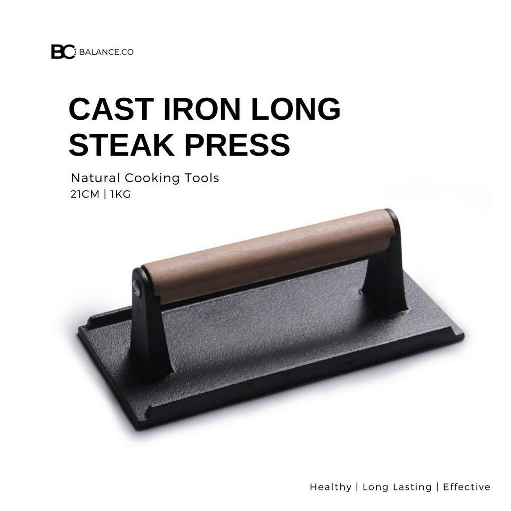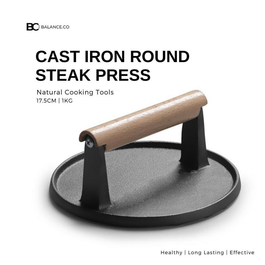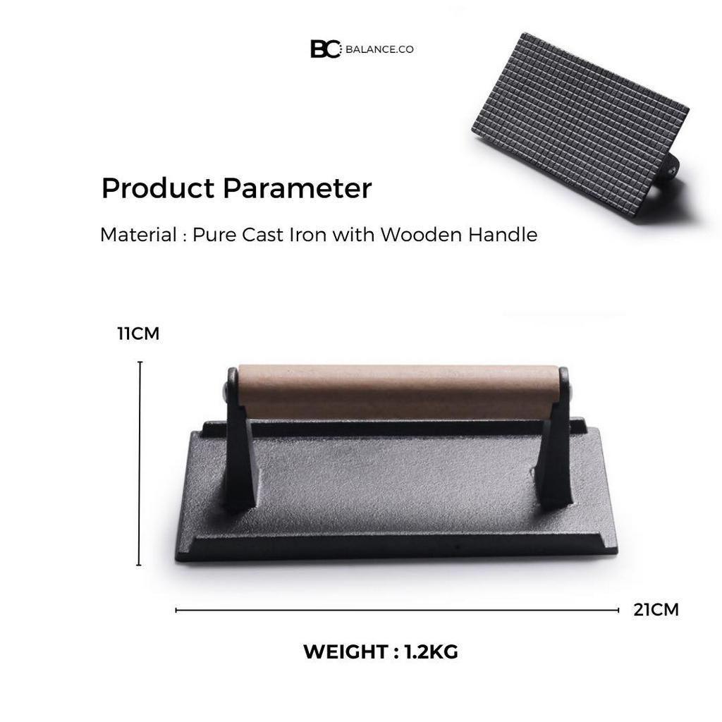 Balance.co Heavy Duty Cast Iron Grill Steak Press with Wood Handle Meat Burger Smasher BBQ Accessory