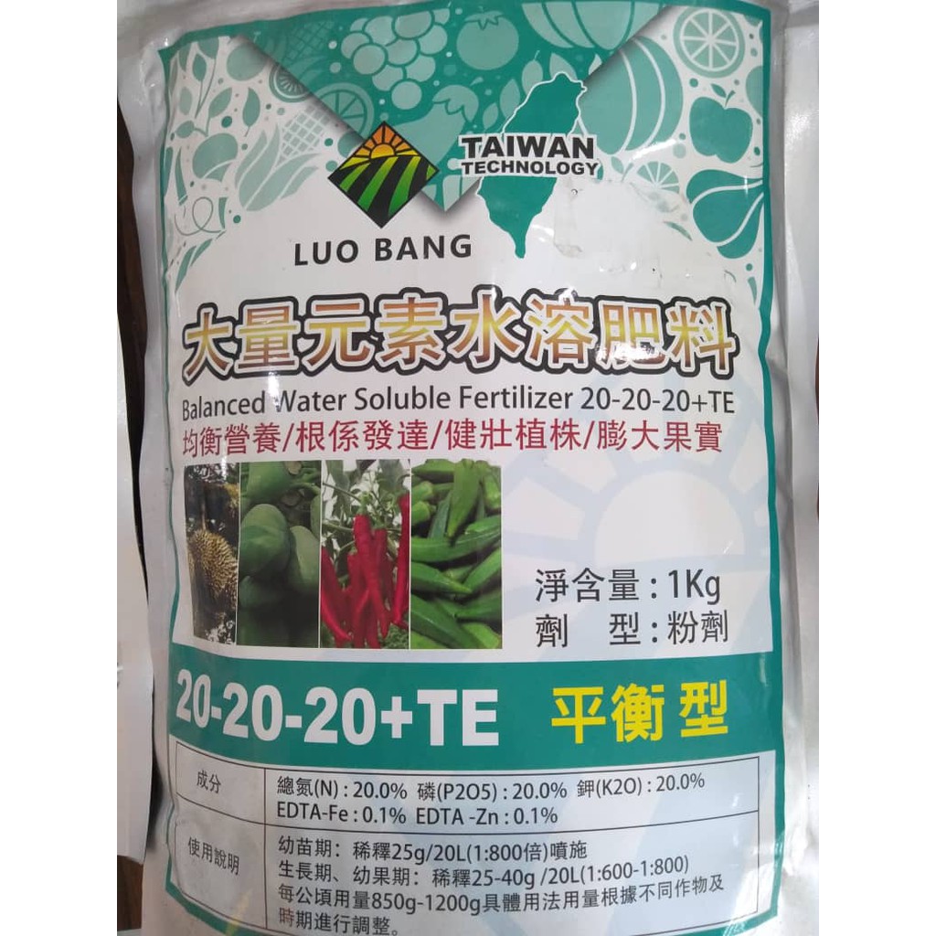 Balanced Water Soluble Fertilizer 20-20-20+TE 1kg