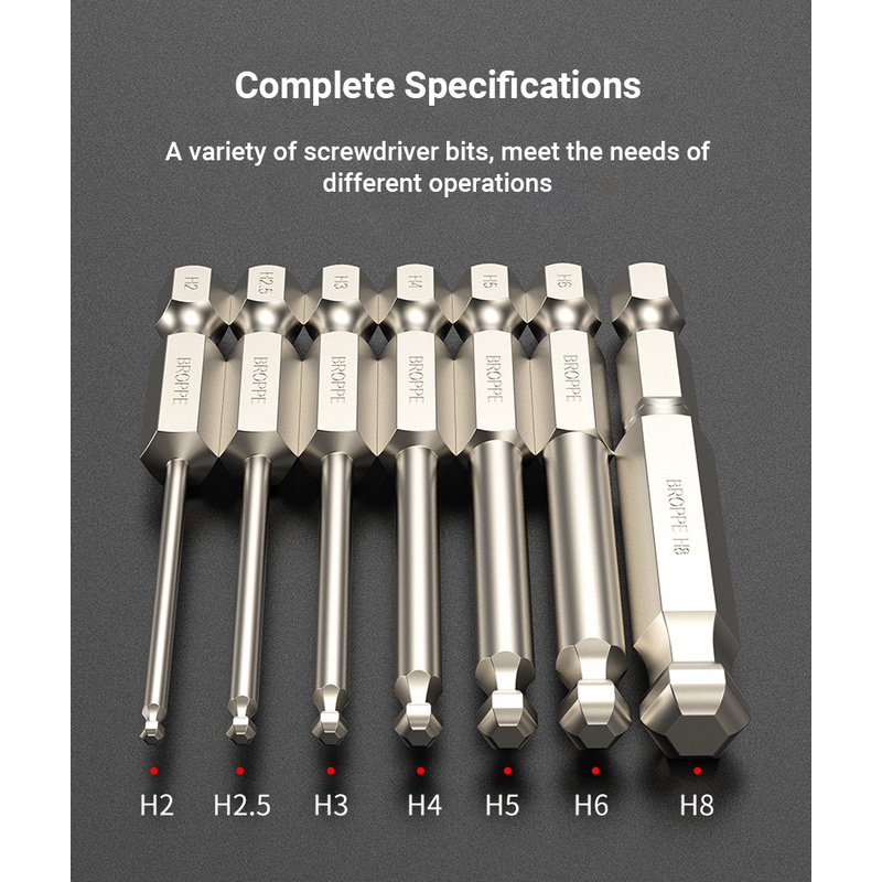Ball End Metric Hex Key Screwdriver Bits 2/2.5/3/4/5/6/8mm, Magnetic 1/4" Hex Shank S2 Steel Ball Head Allen Wrench Screw Driver Bit for Assembling Furniture