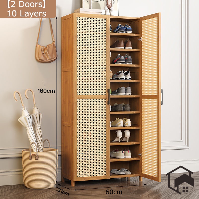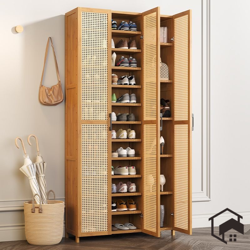 Bamboo Shoe Cabinet Multi-Layer Shoe Rack With Door Multi-Functional Breathable Storage Cabinet