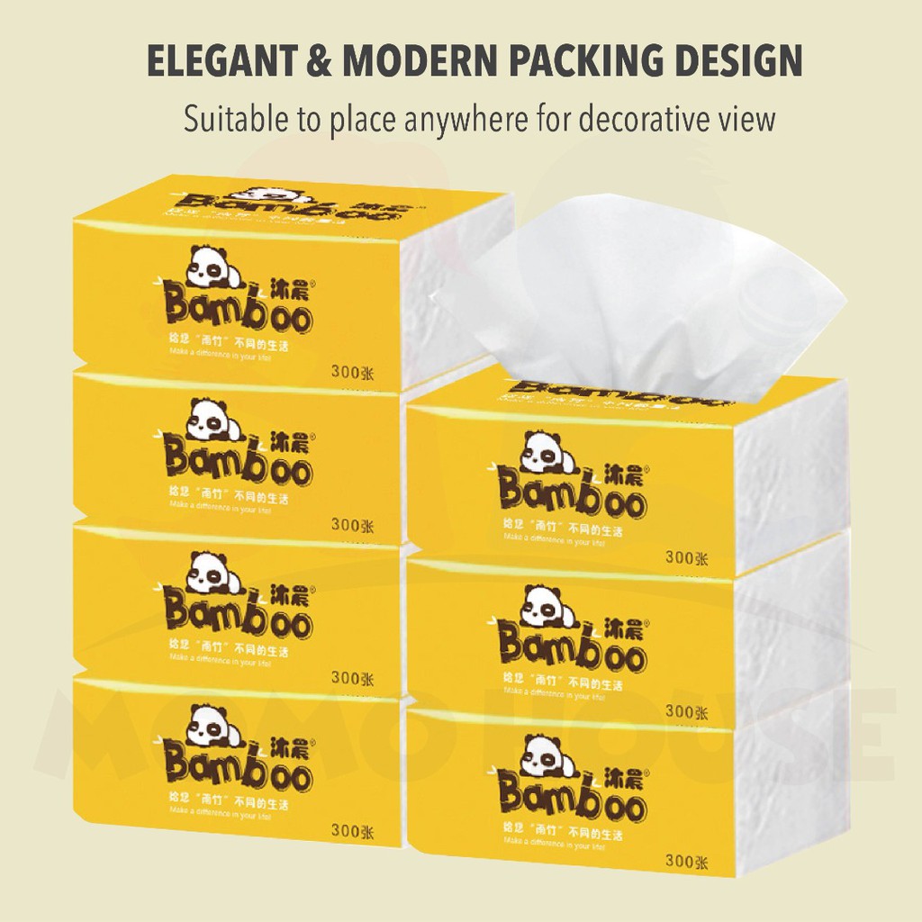 Bamboo Tissue Soft Facial Tisu Paper 75 Pulls x 4 Ply = 300pcs Per Pack