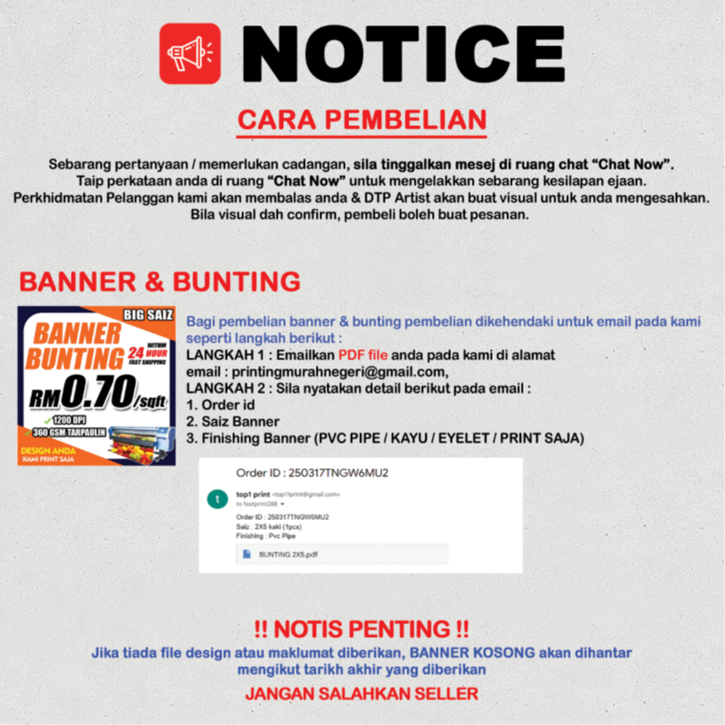 Banner / Bunting Printing Harga Kilang 80sen/sq.ft