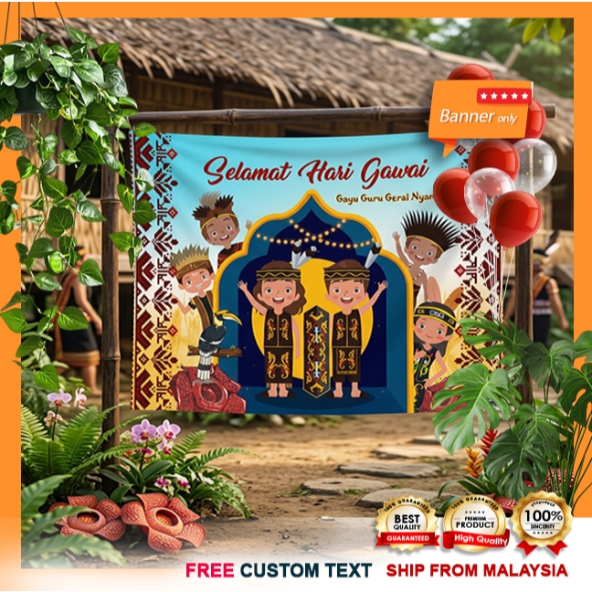 Banner Perayaan / Acara / Hiasan / Pesta / Festival - Selamat Gawai / Gawai / Happy Gawai / Dayak / Pesta Kaamatan