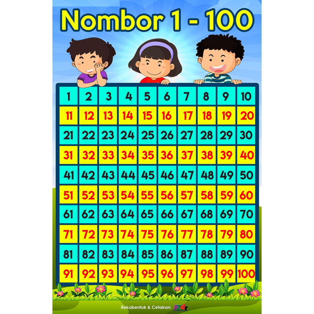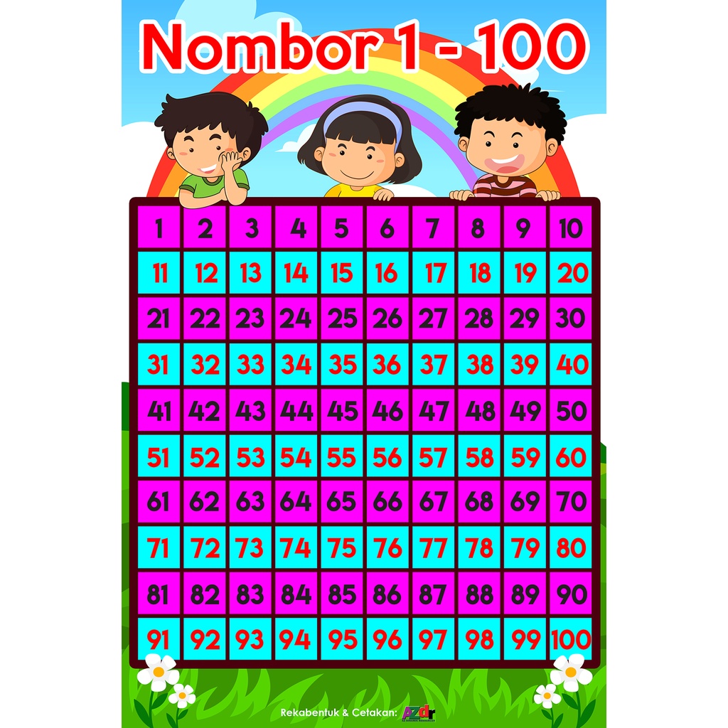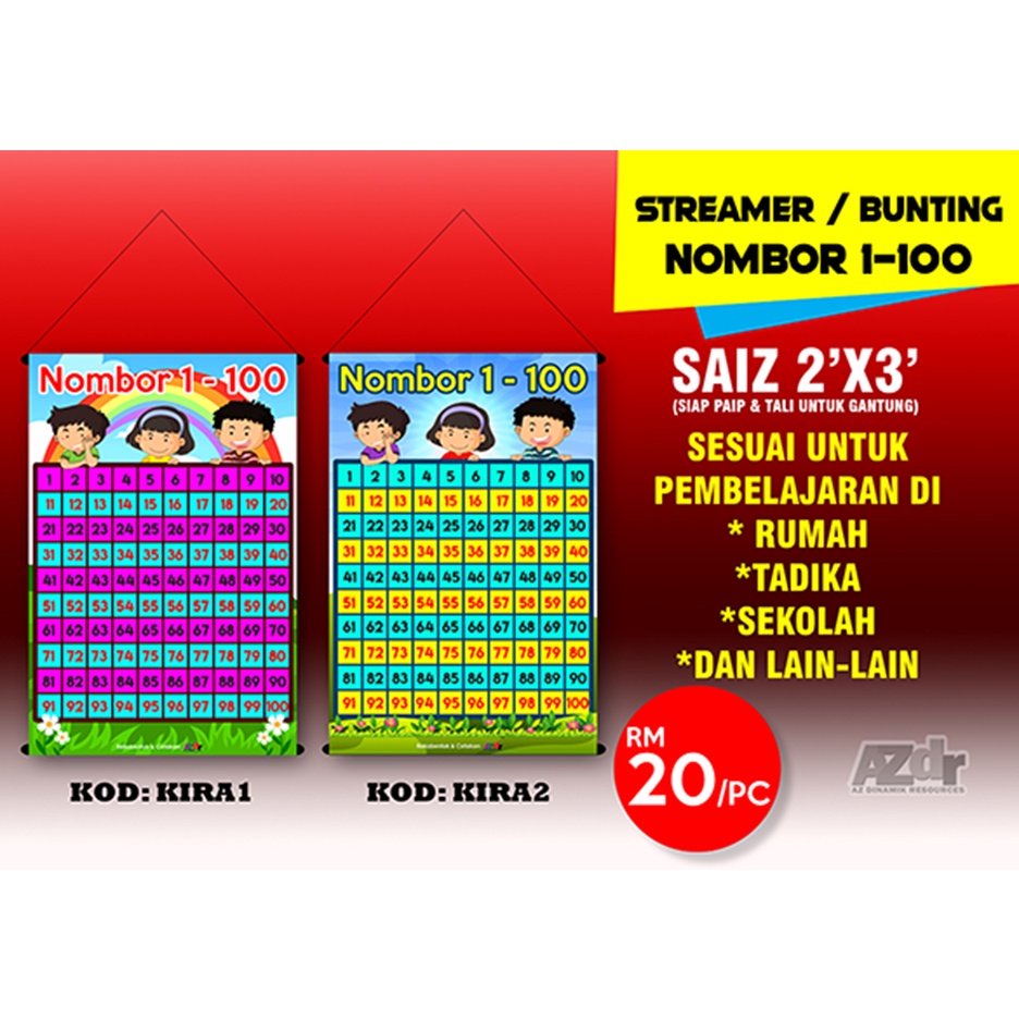 Banner/ Streamer/ Banting Nombor 1-100 2'x3' (Belajar Mengenal dan Mengira Nombor)