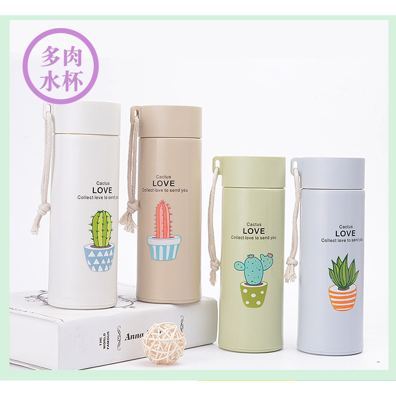 Mug🥤 Cactus Design 450ml Insulated Tumbler Coffee Travel Mug Vacuum Insulated Glass Bottle Officer Worker Glass Bot XZTP