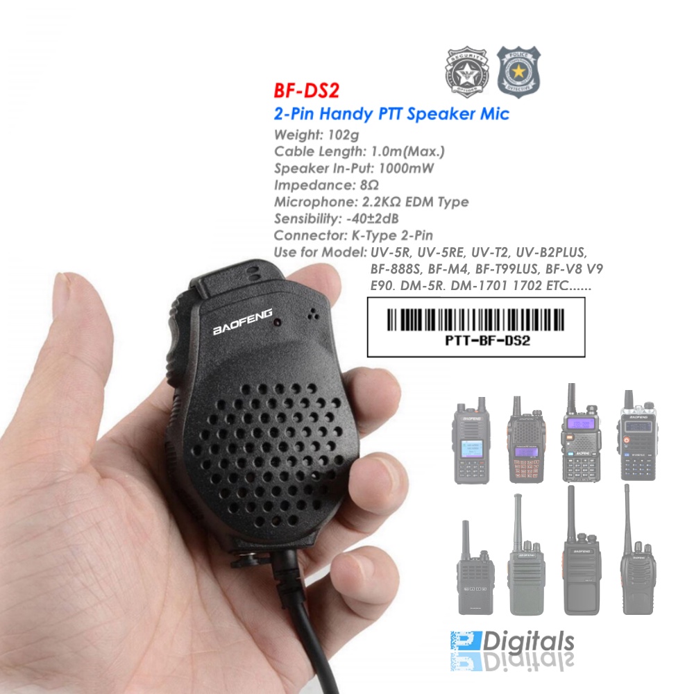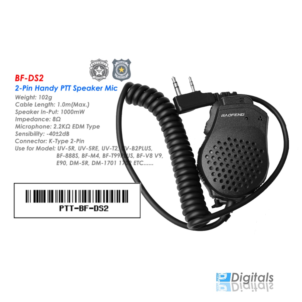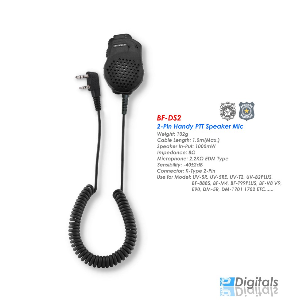 BAOFENG DS2 Handy PTT Speaker Mic 2 Pin Connector