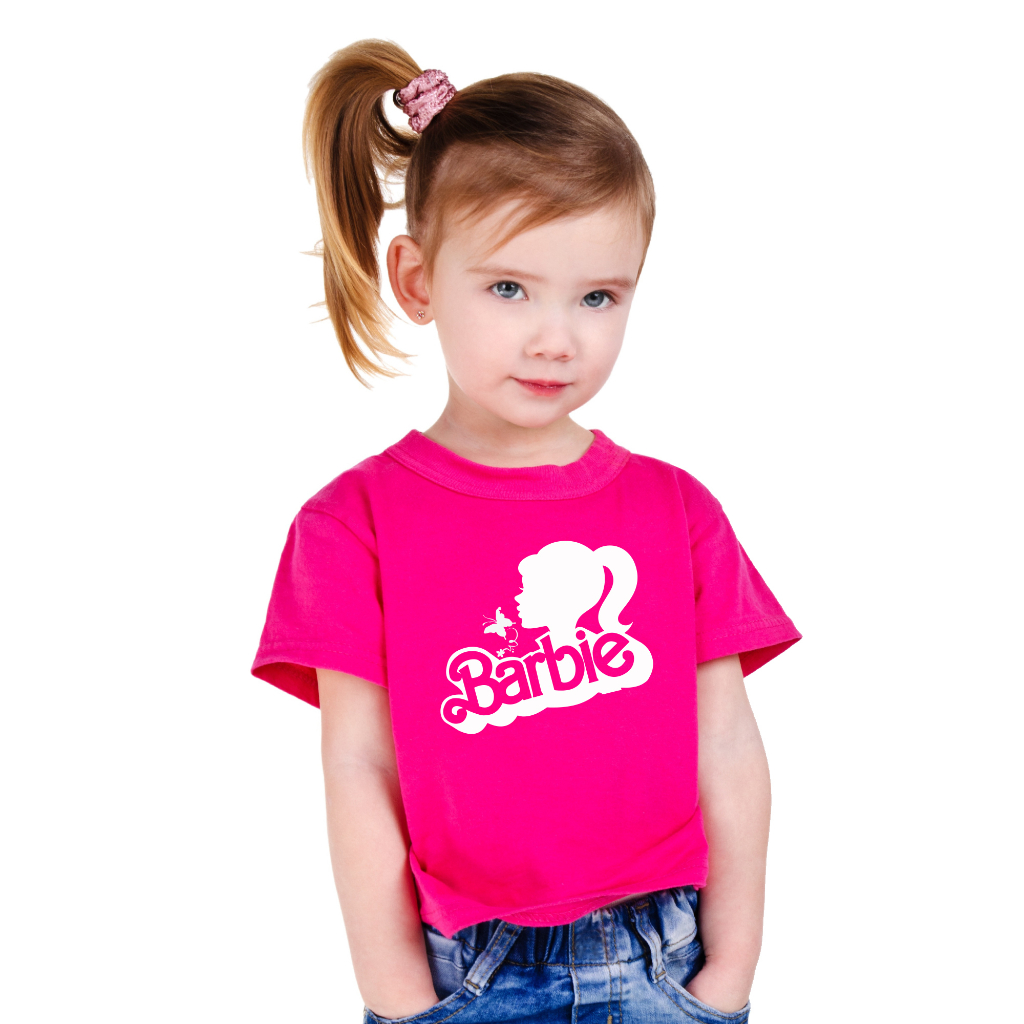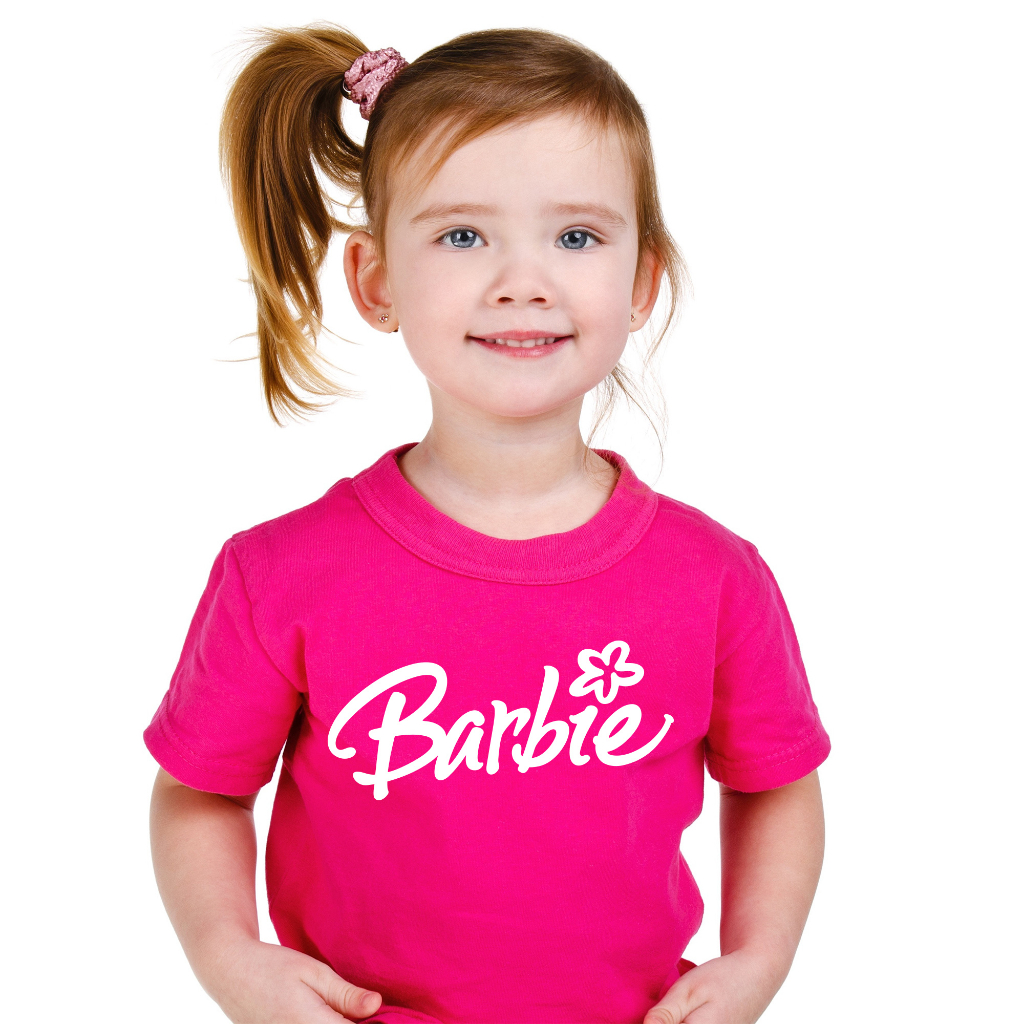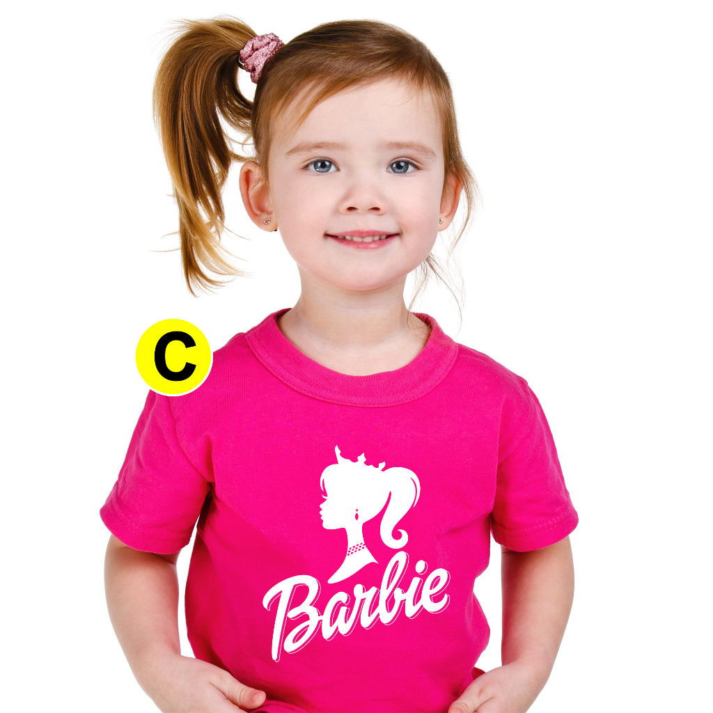 Barbie T-shirt Princess Girls' for Kids Pink Fuchsia Color Cotton. Baju Barbie Viral High Quality 175GSM Cotton T-shirt