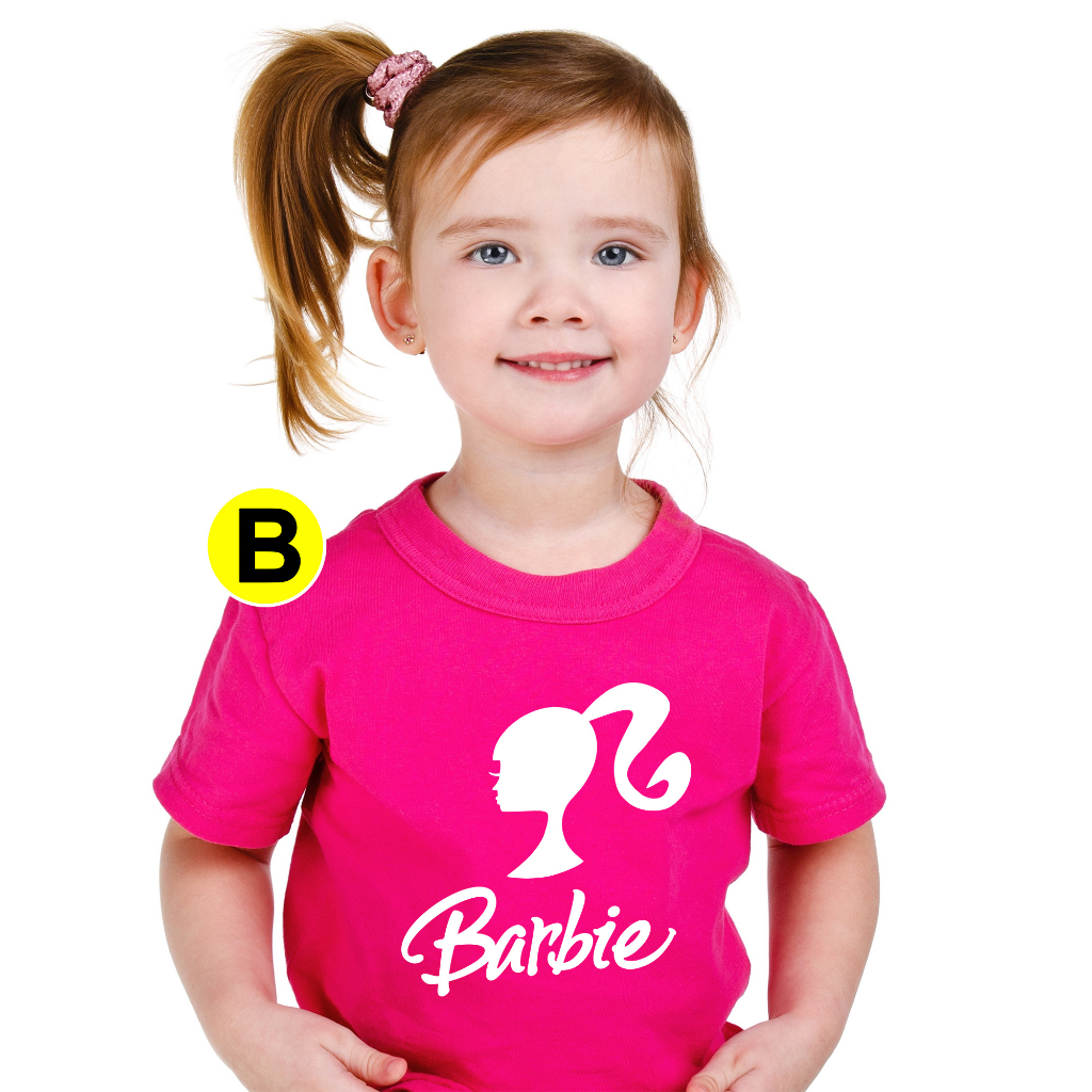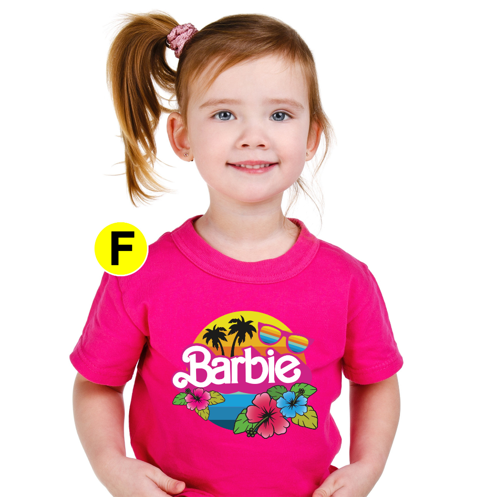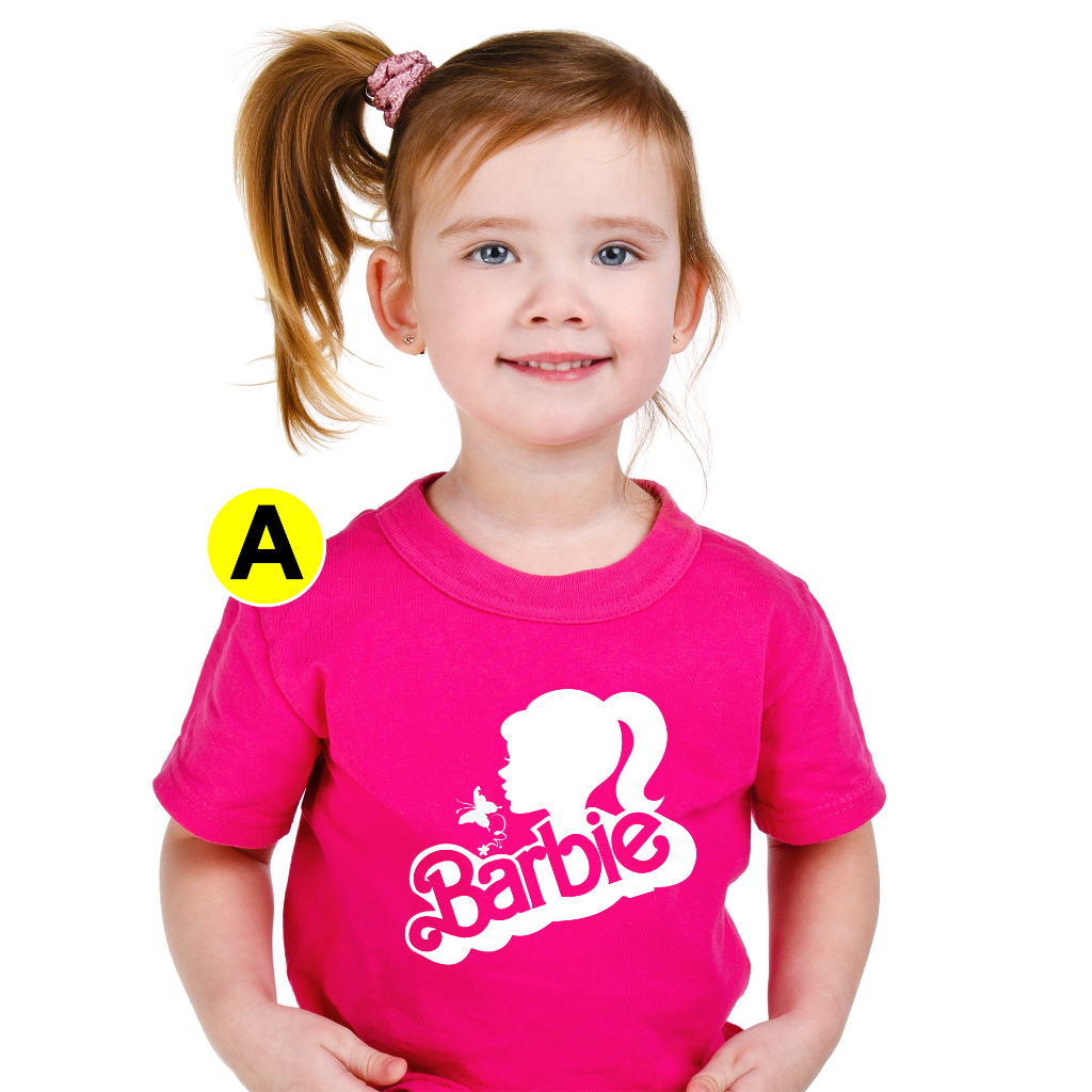 Barbie T-shirt Princess Girls' for Kids Pink Fuchsia Color Cotton. Baju Barbie Viral High Quality 175GSM Cotton T-shirt
