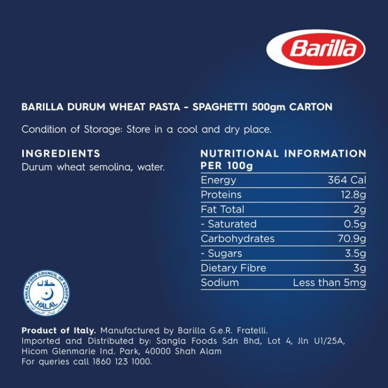 Barilla Spaghetti n.5 n5 1kg Pasta Halal Certified High Quality Spaghetti (Cheap Price than 500g)