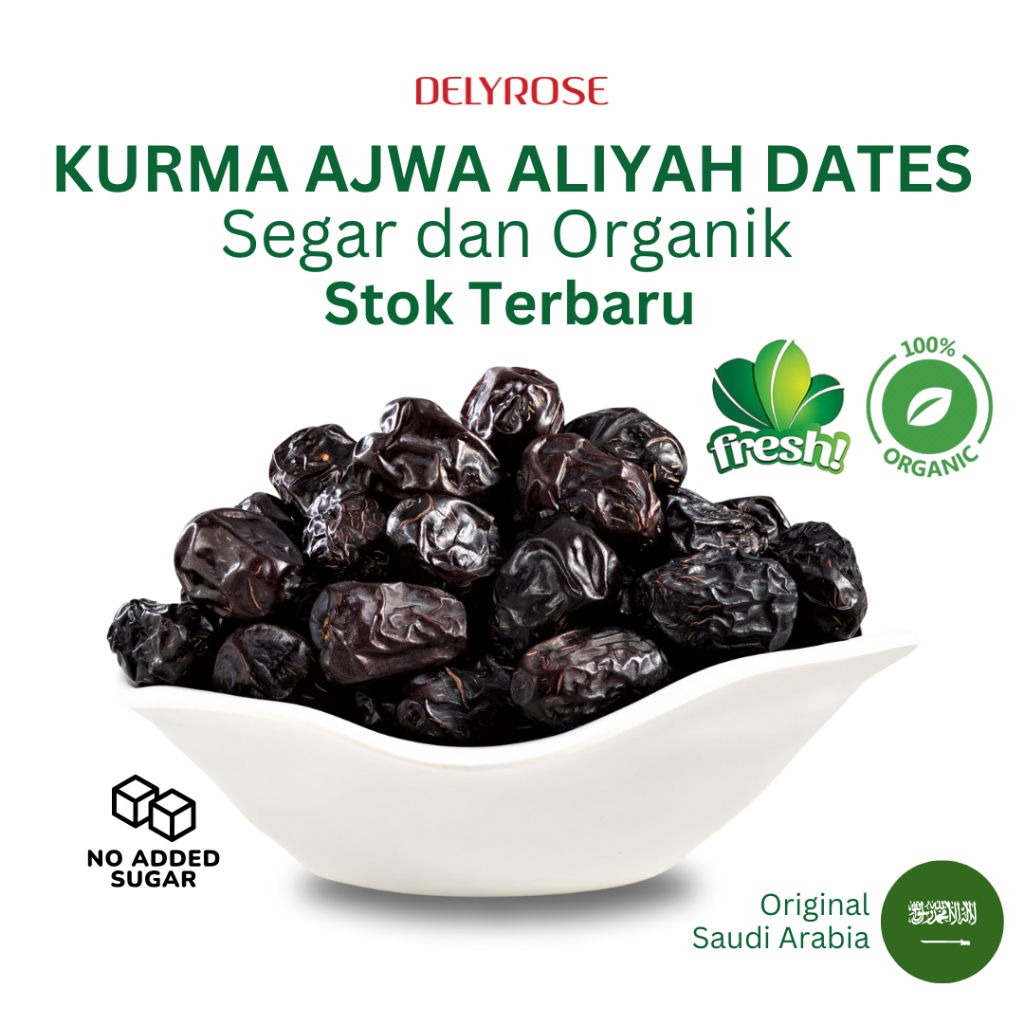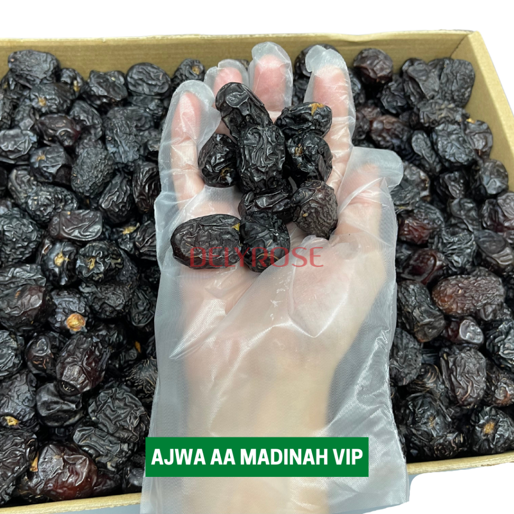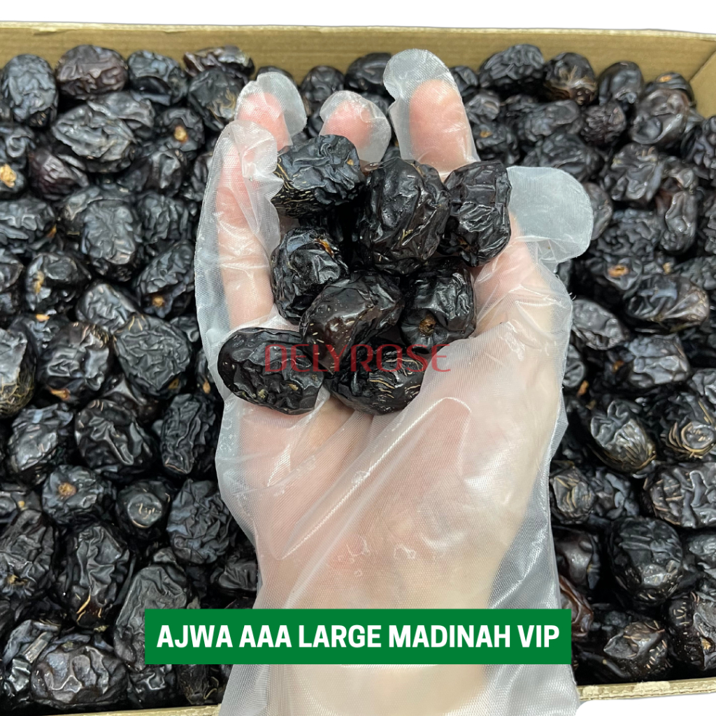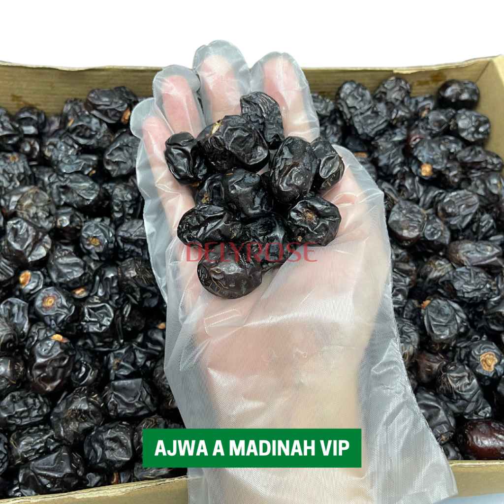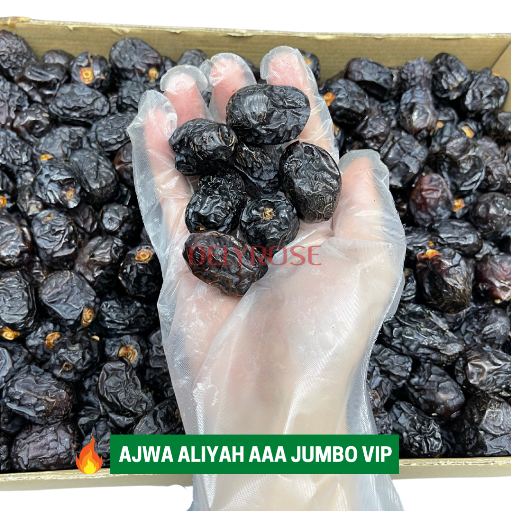 Kurma Ajwa Aliyah Dates Madinah Buah Original Premium Murah Borong 100g/200g/500g/1kg | DELYROSE