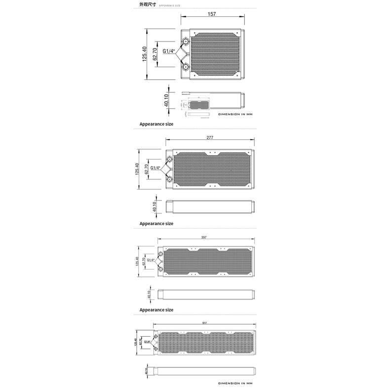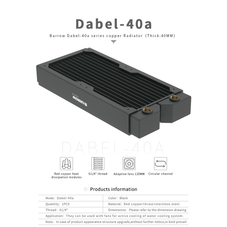 Barrow Copper Radiator 40mm Thickness , Suitable For 120mm Fans, PC water cooling Accessories ,Dabel-40a 240/360/480