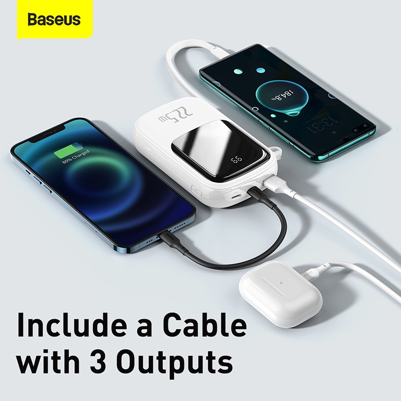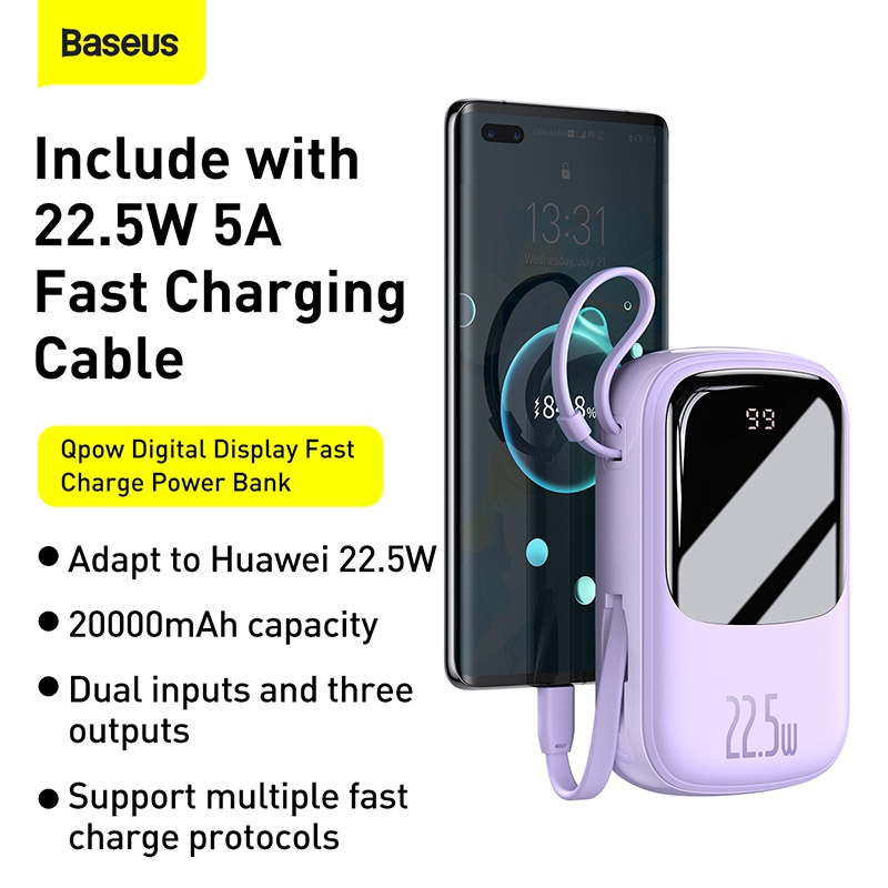 Baseus Power Bank 20000mAh PD Fast Charging Powerbank Built in Cables Portable Charger External Battery Pack For Phone