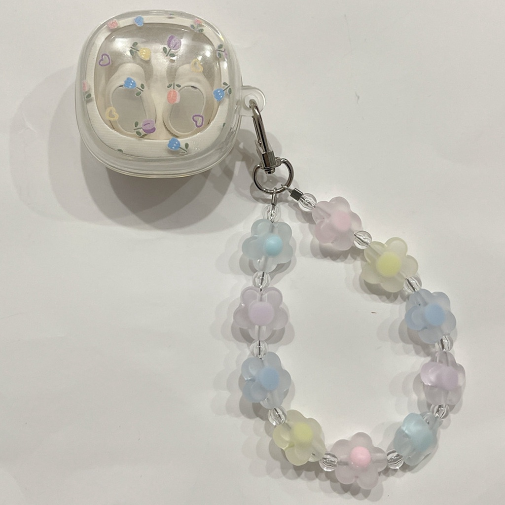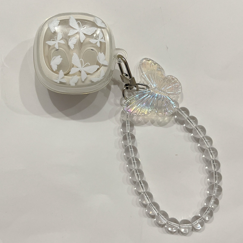 Baseus WM01 WM02 Earphone Case Elegant Bowknot Pink Love Sticker Flowers Butterfly Pattern Earbuds Cover with Anti-lost Chain Pendant Soft TPU Wireless Headset Protective Shell