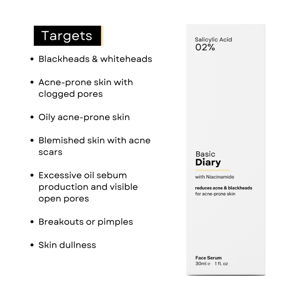 Basic Diary 2% Salicylic Acid Face Serum for Acne, Blackheads and Whiteheads Control (30ml)