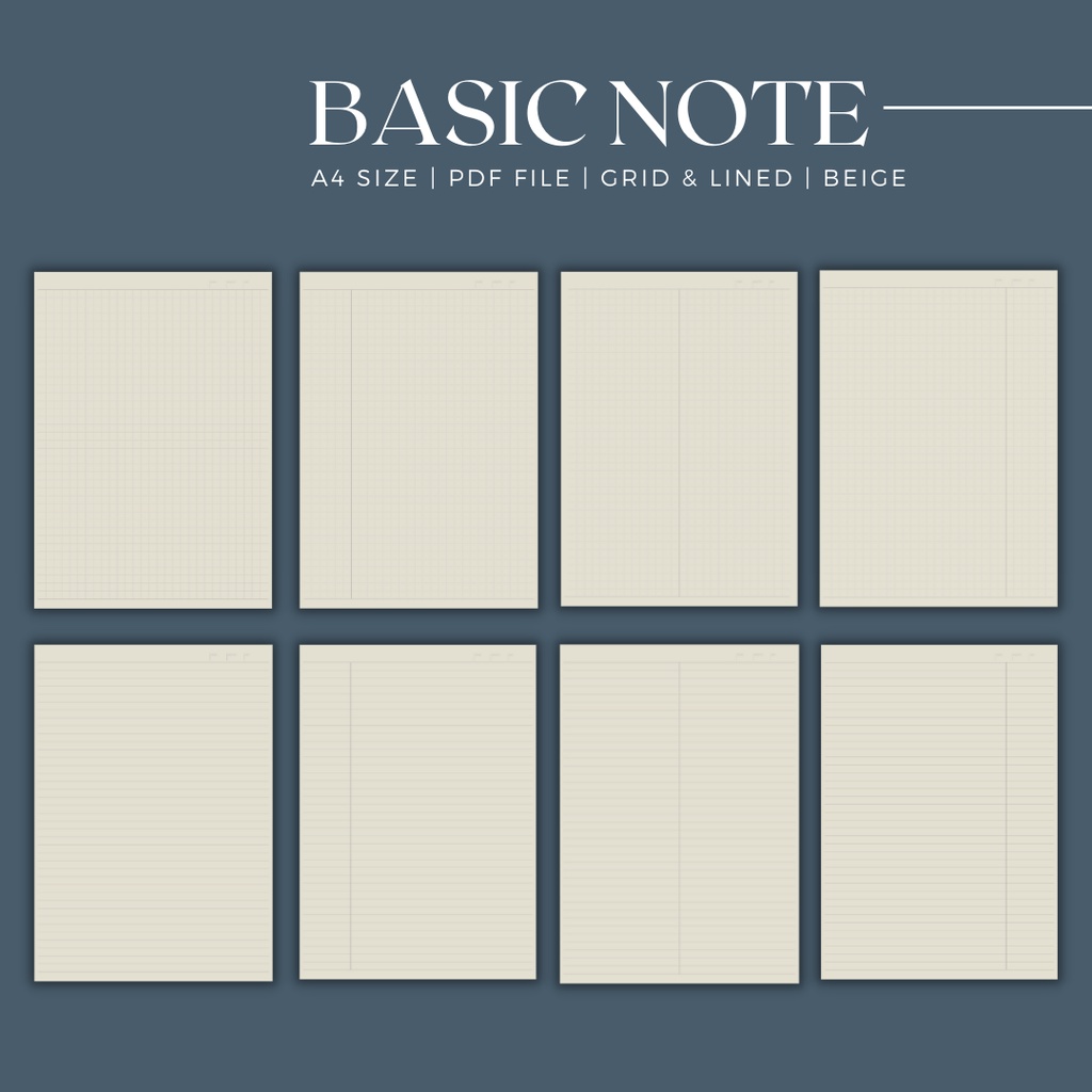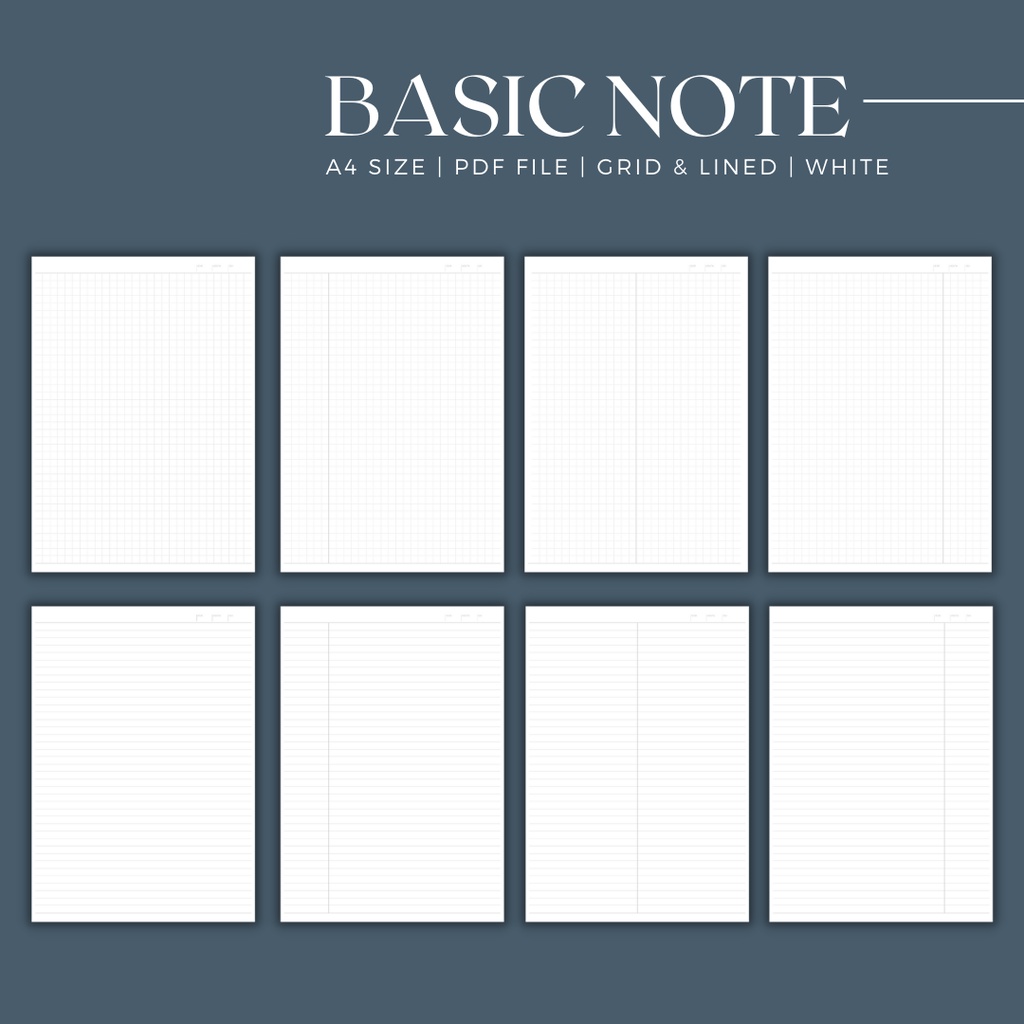 Basic Writing Digital Note Taking Printable Paper Template 44 Layout | Lined Graph Grid Cornell | GoodNotes Journal PDF