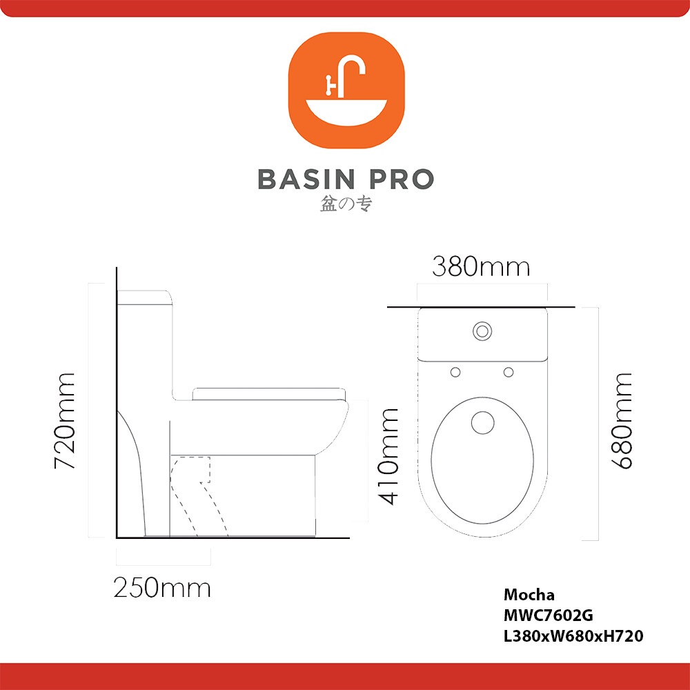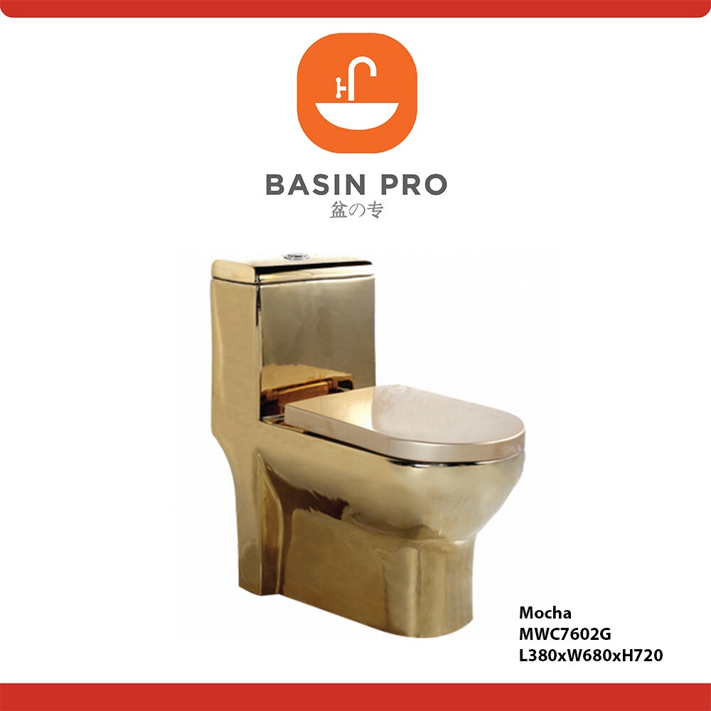 Basin Pro - Mocha One-Piece Water Closet Floor Standing Ceramic Gold Toilet Bowl (MWC7602G)
