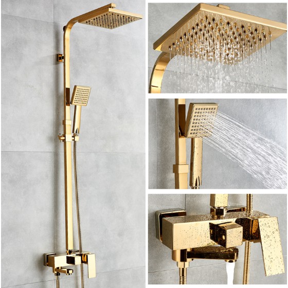 Bath Shower Faucets Luxury Gold Brass Bathroom Faucet Mixer Tap Wall Mounted Rainfall Shower Head Shower Faucet Sets Bathtub tap20