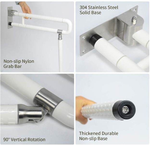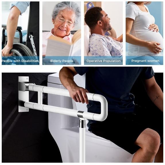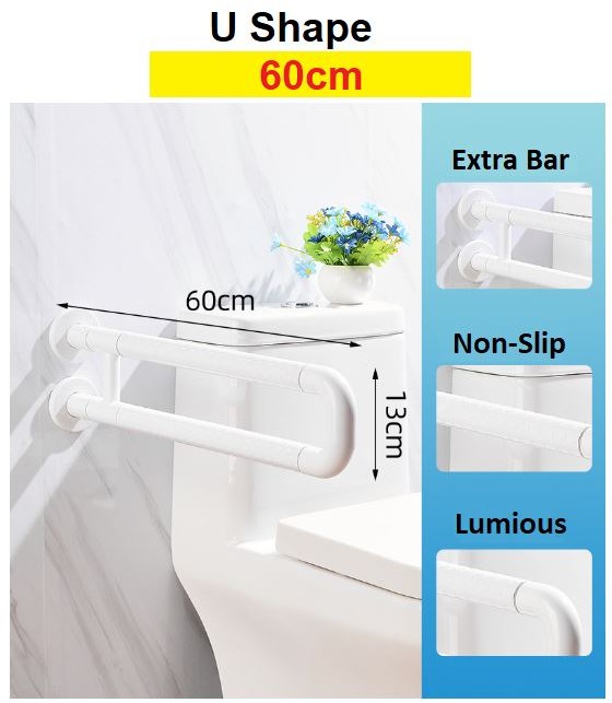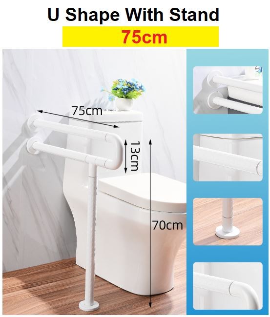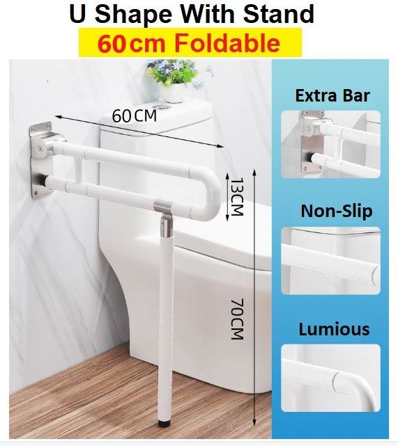 Foldable Bathroom Safety Handle White U Shape OKU Handle Anti Slip Handle Pemegang Tandas Handicap Handle