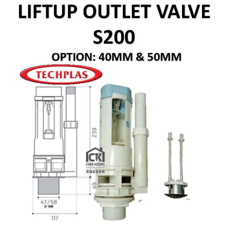 Bathroom Toilet Cistern Push Button Siphon Single Flush Liftup Valve S200 40mm 50mm Pum Jamban Tangki Tandas Tekan