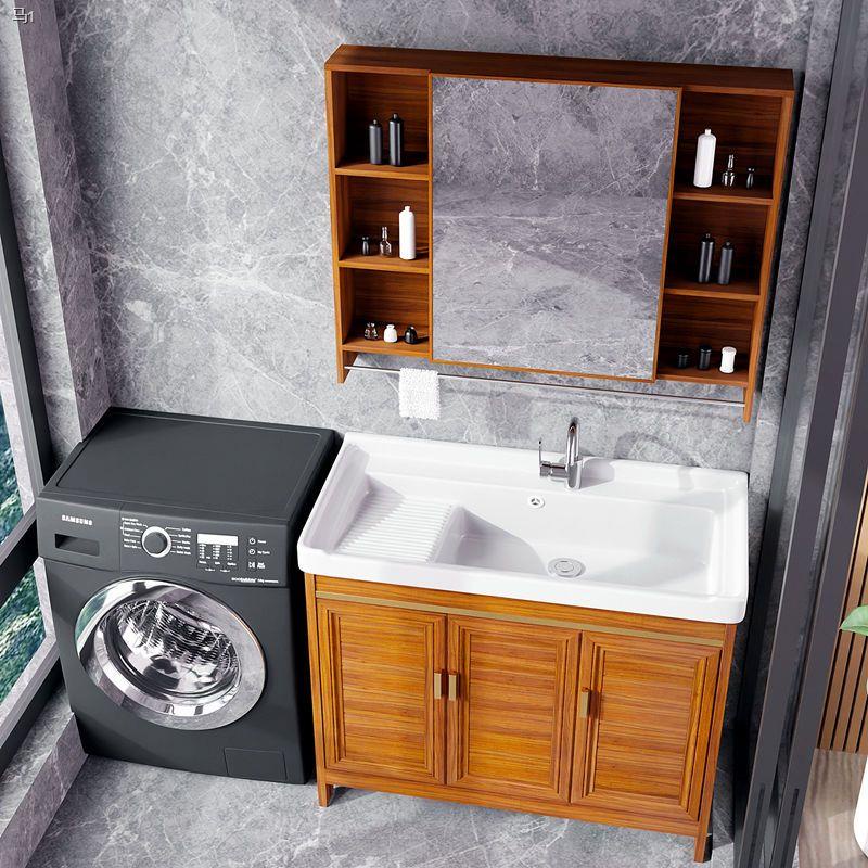 Bathroom balcony ceramic laundry basin with washboard sink space aluminum white floor-to-ceiling bathroom cabinet com