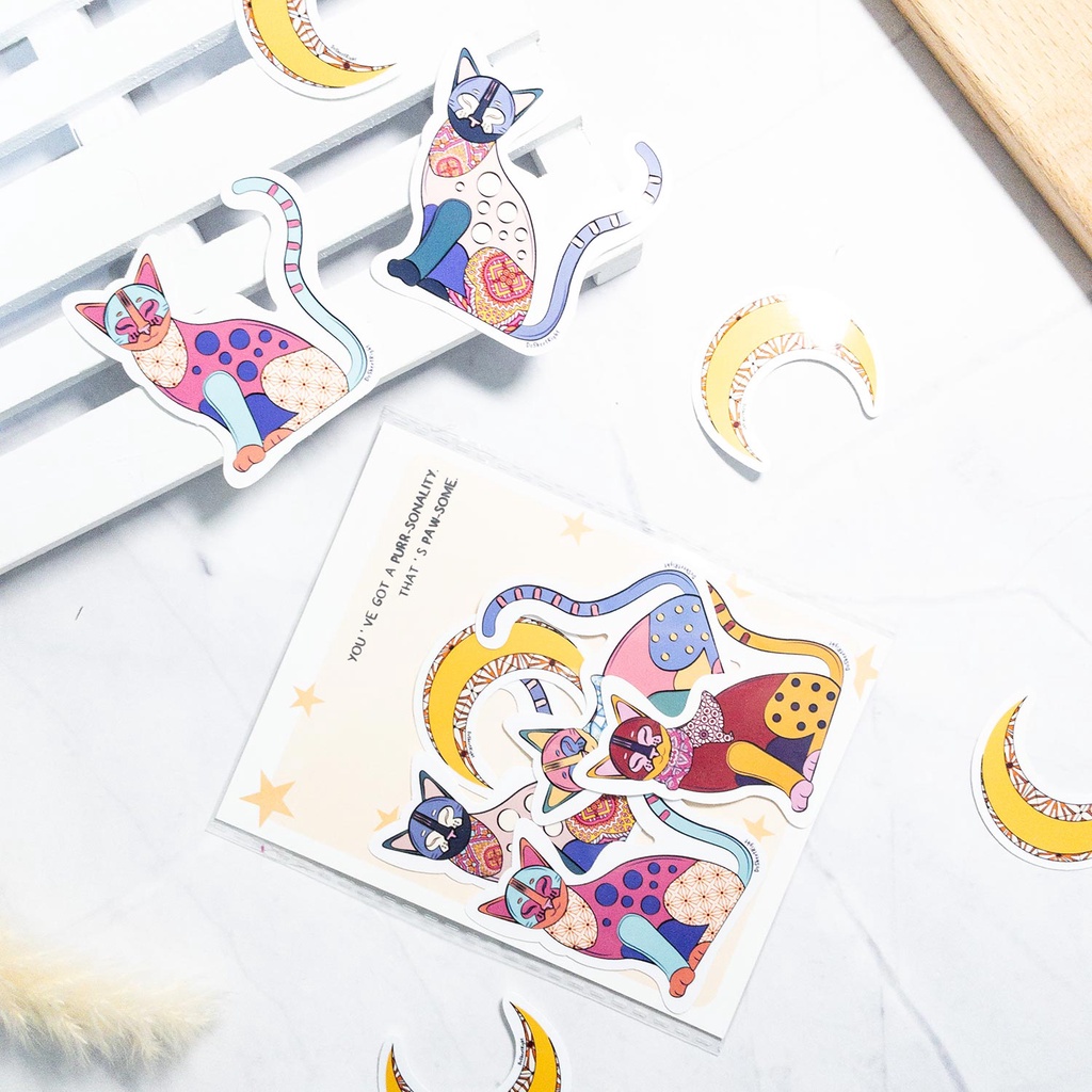 Batik Cats Sticker Pack, (Batik Sticker, Raya Specials, Sticker for Journal, Decorative Sticker, Gift for Her)