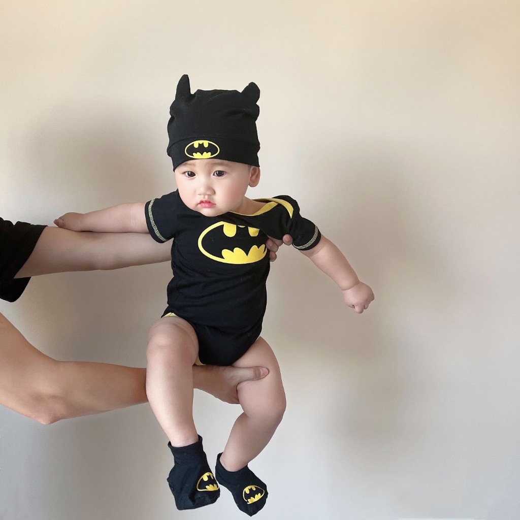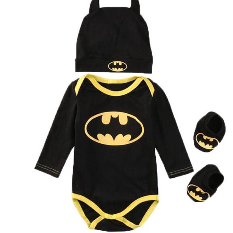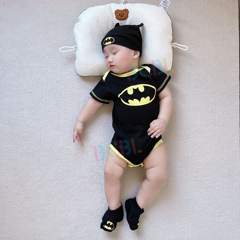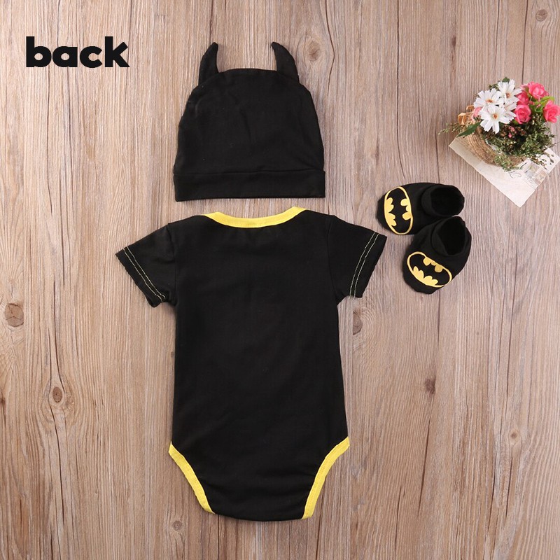 Batman Romper Baby Boy 3 6 12 Month Newborn Baby Boy Clothing Set Cartoon 3Pcs Baby Romper Newborn One Piece Socks Hat Costumes Outfits