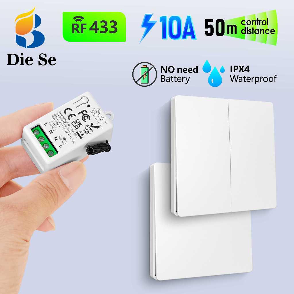 No Battery required RF Wireless remote control switch,Waterproof Panel switch,AC 110V/220V Relay for Light,Fan,Lamp,LED