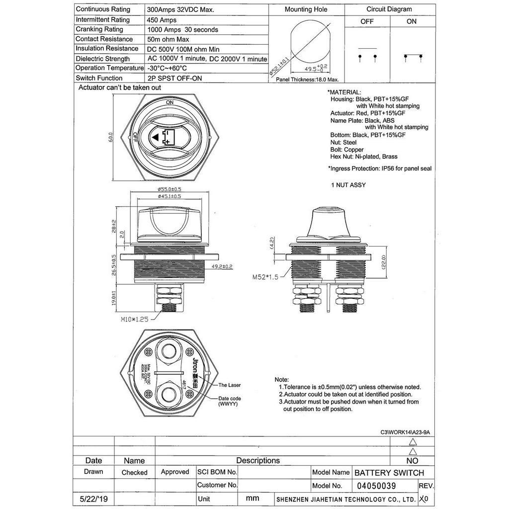 Battery Switch MAX 12-32V DC 300A Cont 450A INT Battery Power Cut Master Switch Disconnect Isolator for Car Vehicle RV and Boat (ON-OFF/300A)