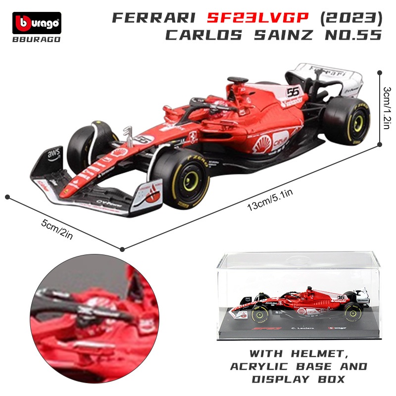Bburago 1:43 F1 Ferrari SF23 Las Vegas GP #16 Charles Leclerc #55 Carlos Sainz Formula 1 Racing Alloy Car Diecast Model Toy Collection Gifts