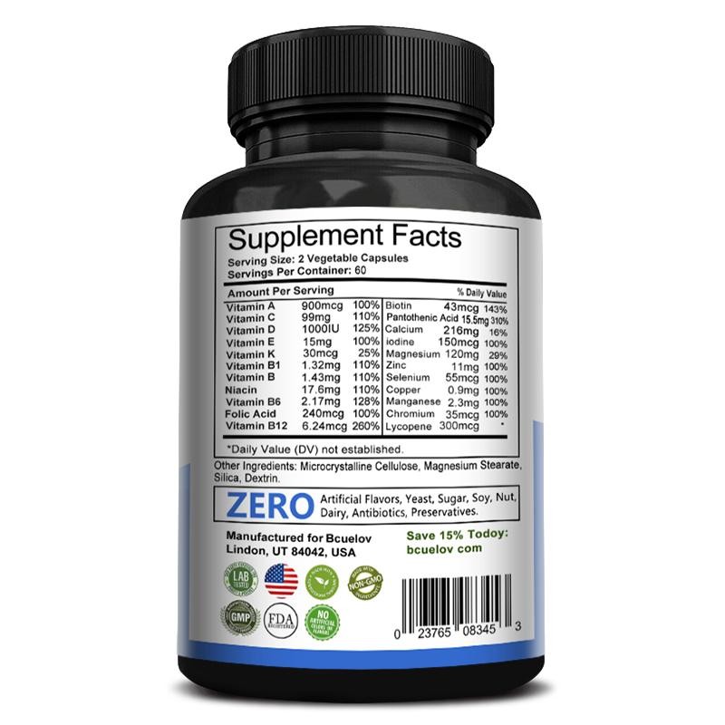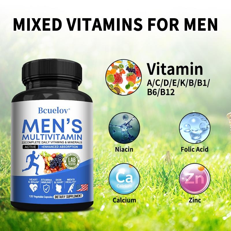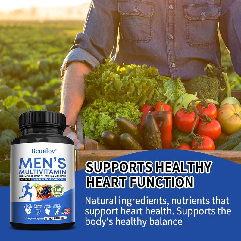 Bcuelov Men's Multivitamin with Folic Acid and Vitamin E To Support Immune, Joint and Heart Health